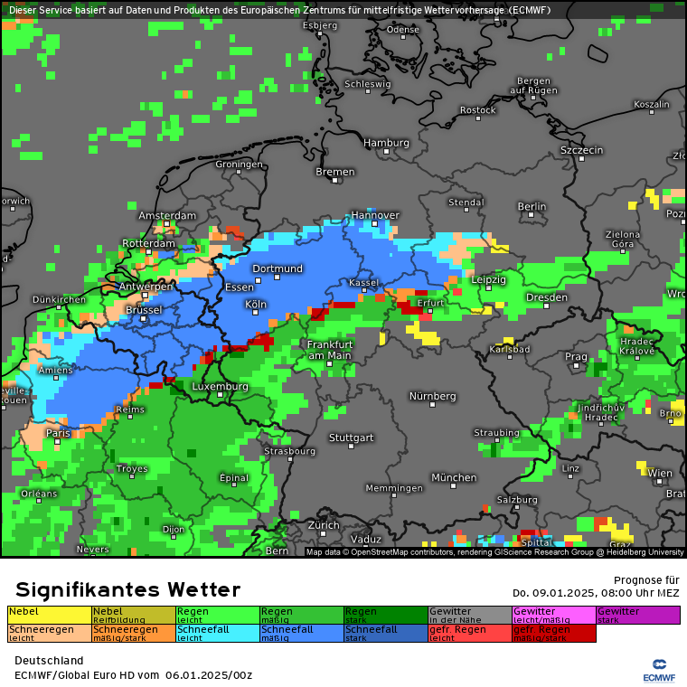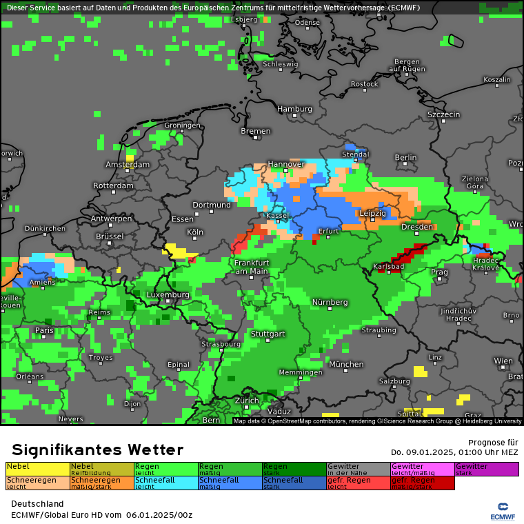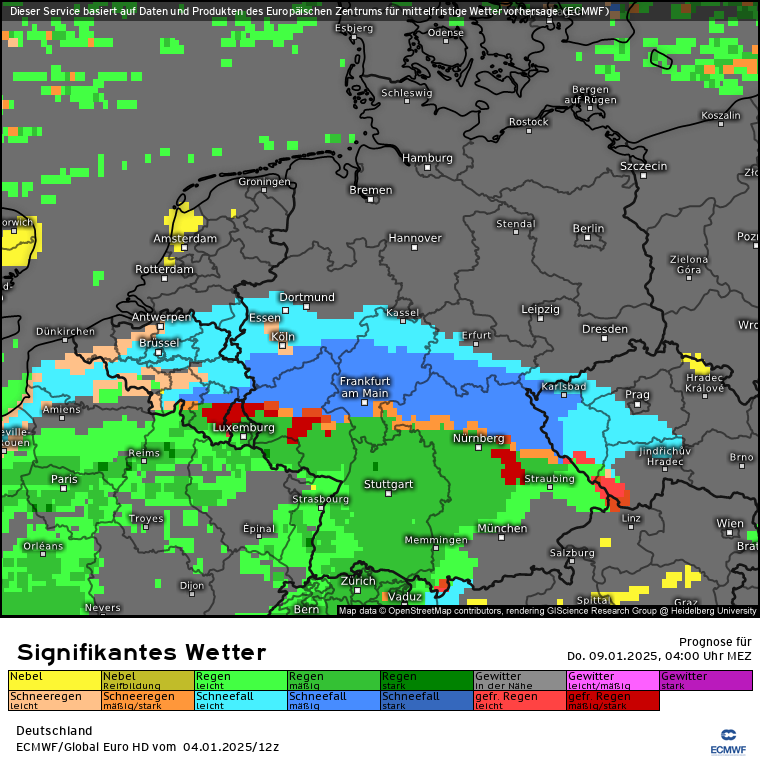 Nachdem es von ca. 3:45 Uhr bis 8 Uhr geschneit hat, hat nun hier in der Rhein-Main-Region bei -1 Grad der Regen eingesetzt. Die Prognose passte genau. Jetzt mal hoffen, dass die gefährliche Übergangsphase glimpflich verläuft. Am Airport FRA sind die meisten Starts aktuell annuliert.