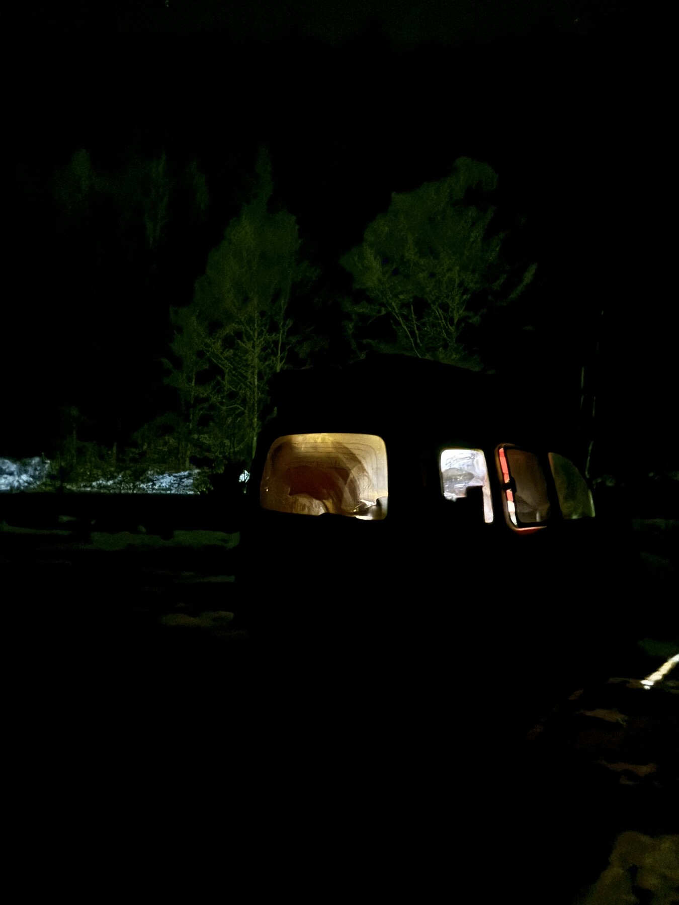 Da wir mit unserem Minicamper unterwegs waren hatten wir unser Ziel erreicht und kochten etwas leckeres und bereiteten dann unser Nachtlager vor, um morgens früh am der Kasse zu sein, um den Zweitagesskipass zu erstehen.