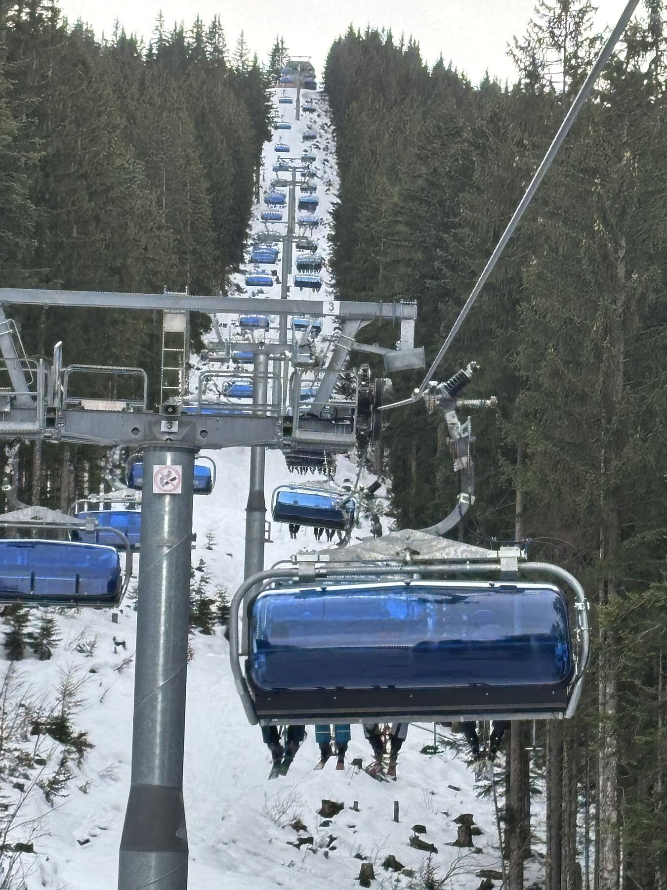 Keine große Überraschung, dass die beiden höchsten KSB heute ausser Betrieb waren. So ging es erst einmal runter zur Kammerkör Bahn, an deren glattgewehten und eisigen Pisten ich mich gleich mehrere Male austob. Im Bereich Kappellen und Steinplattenbahn war noch sehr viel los und so erfreute ich mich an der langen sanften Piste zum Kurvenlift und Rossalmbahn. Die Talabfahrt nach Reit war leider zu.