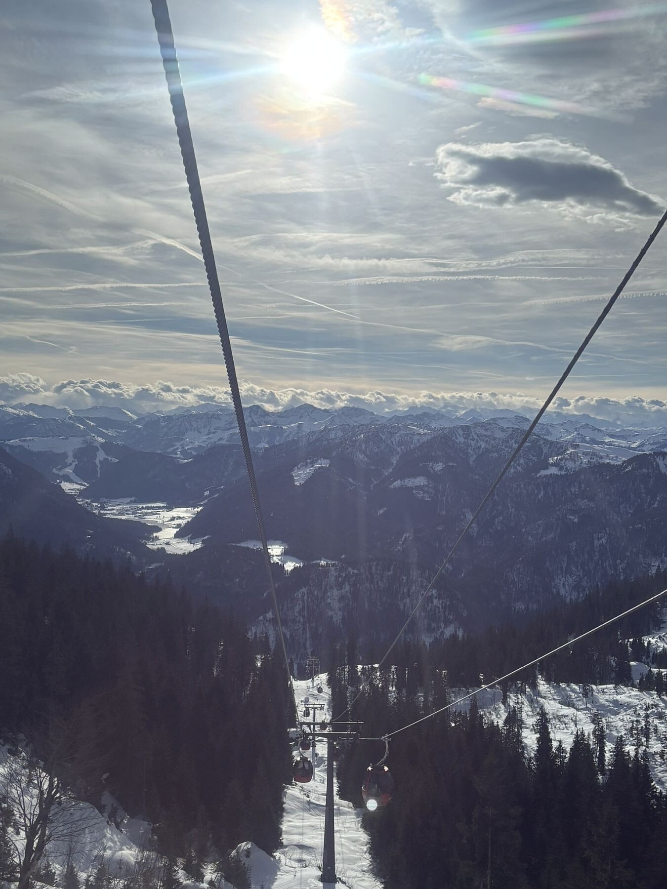In Waidring angekommen, ahnte ich noch nicht, wie stark da oben der Föhnwind blasen wird. Während der Auffahrt fuhr die Bahn mehrmals maximal Schrittgeschwindigkeit und auch wenn ich eigentlich keine großen Schwierigkeiten mit Höhe und Wind habe, so wurde mir oben kurz vor der Bergstation doch etwas mulmig.