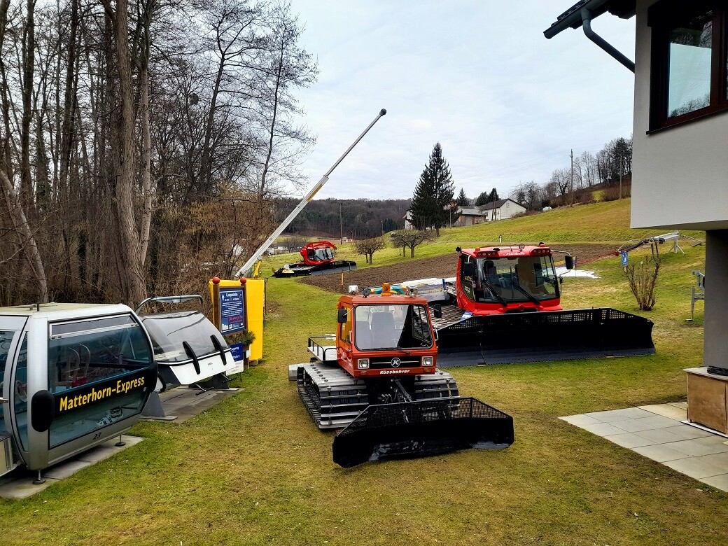 Ein Bild mit 3 Pistenbully´s in einem Garten und das im Burgenland - hat schon Seltenheitswert