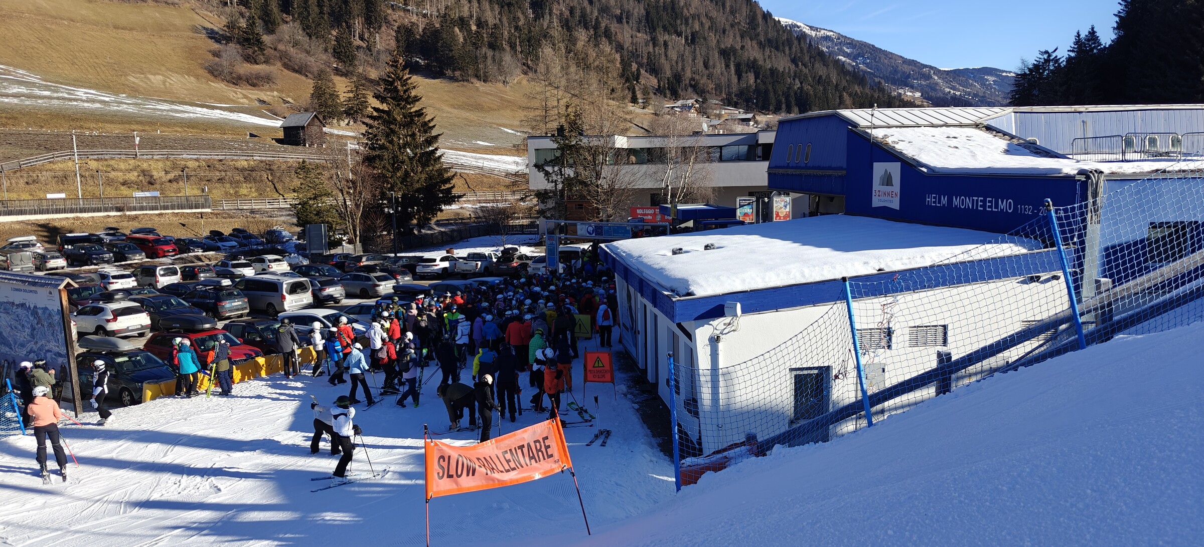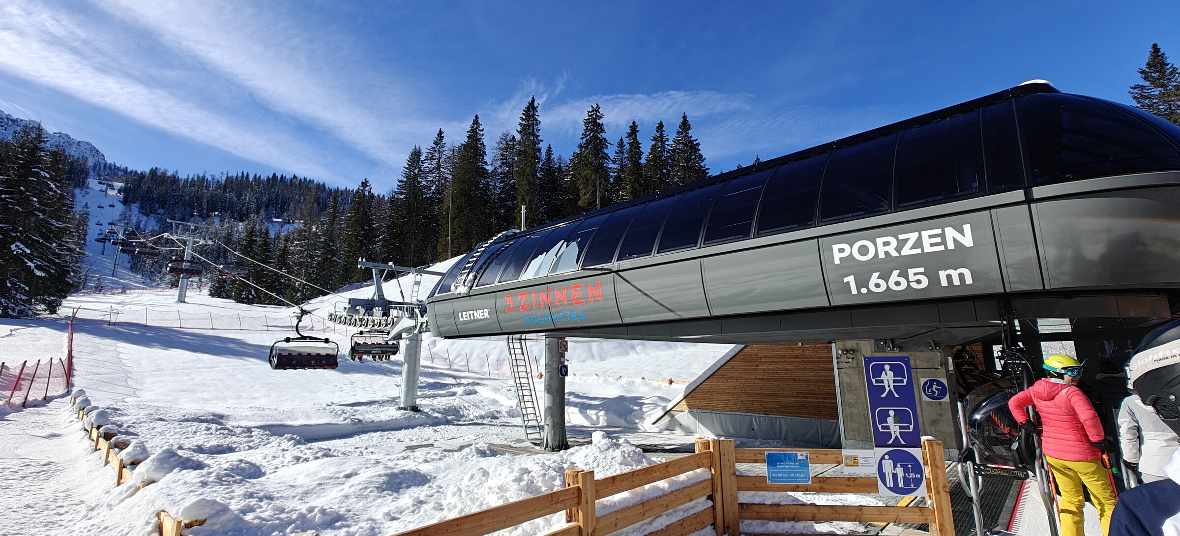 Die Warteschlange an der 6EUB in Vierschach gefällt mir allerdings weniger - Wartezit 15min, das Personal ist auf Zack und mit Nachdruck wird jede Gondel voll besetzt! Die Bahn ist mittlerweile ein Flaschenhals aufgrund der schwachen Kapazität..