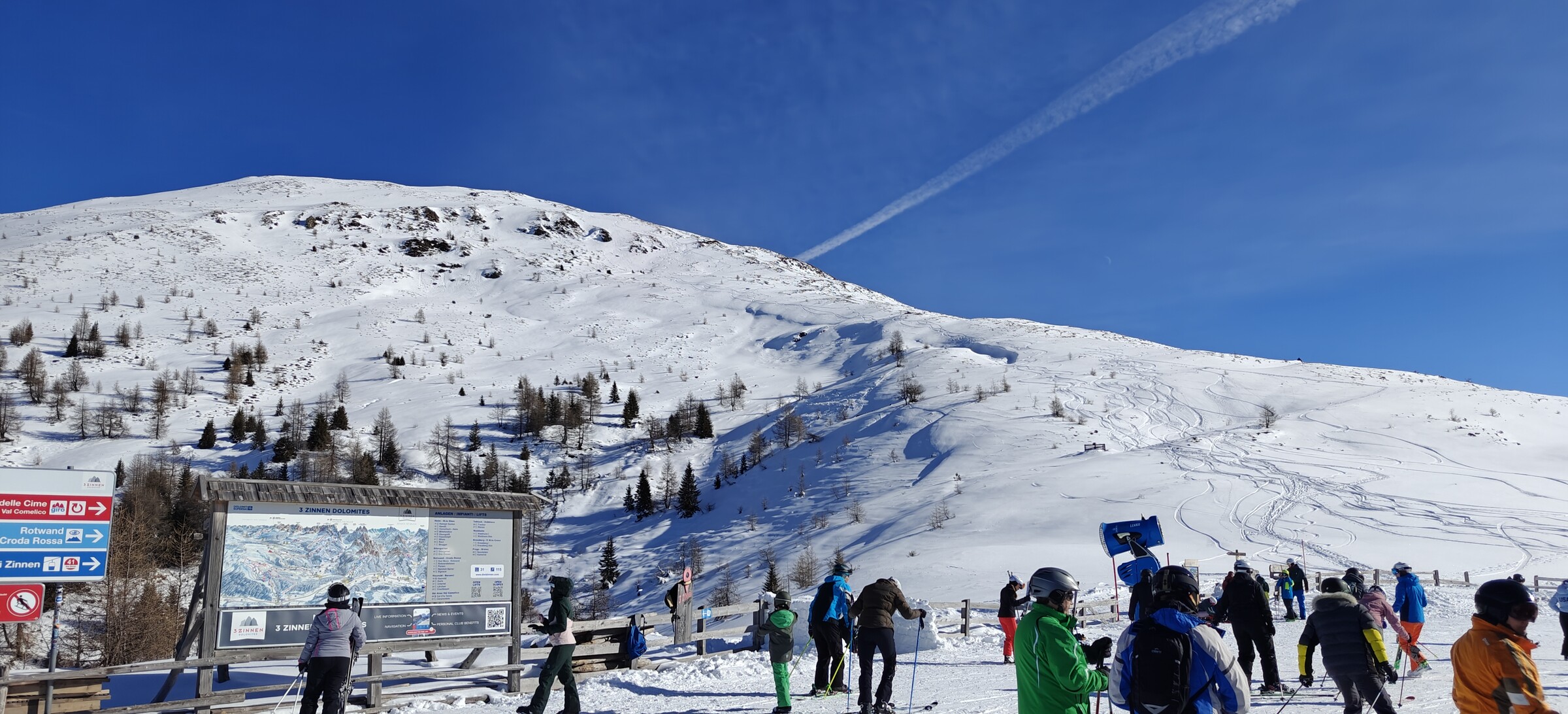 Das Skigebiet Drei Zinnen heißt so, weil man aus keinem Teil des Skigebiets die Drei Zinnen sehen kann, oder?