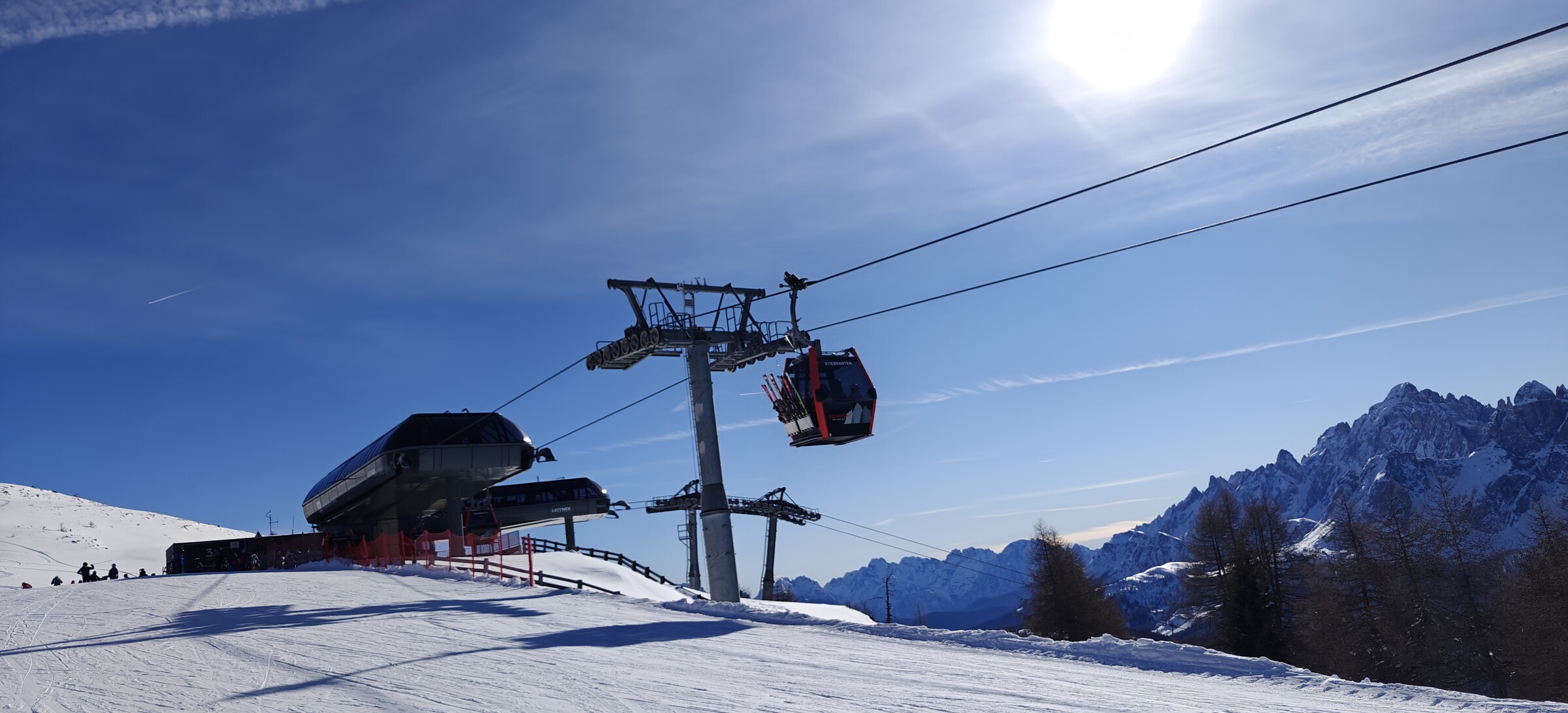 Wechsel zur Abfahrt der 3Zinnen Bahn.