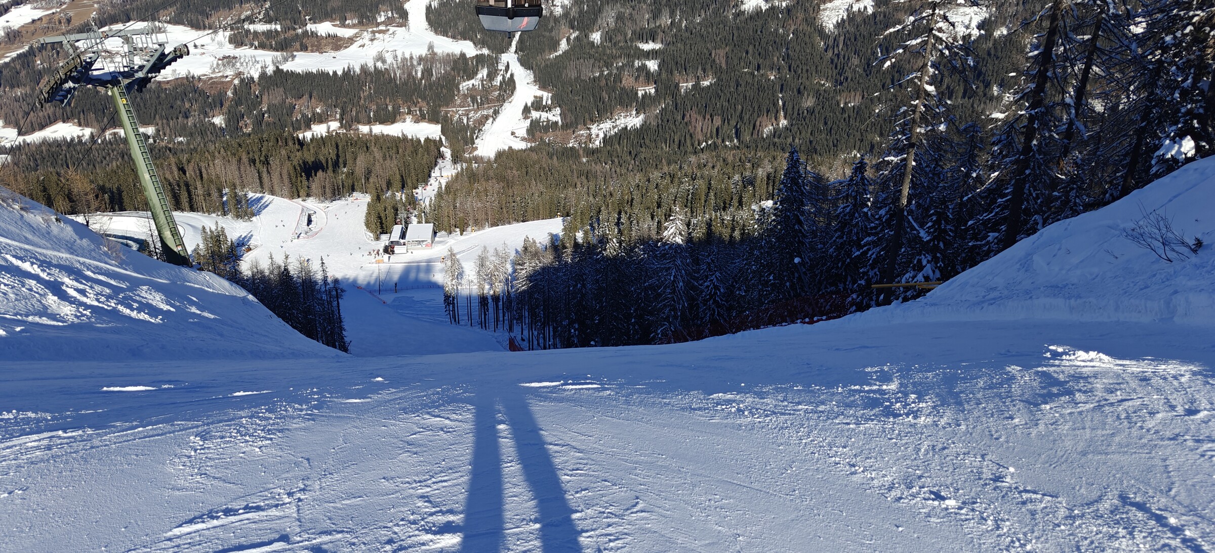 die neuen Pisten sind lässig geworden, allerdings tiefster Schatten hier, dementsprechend knackig kalt ists hier.