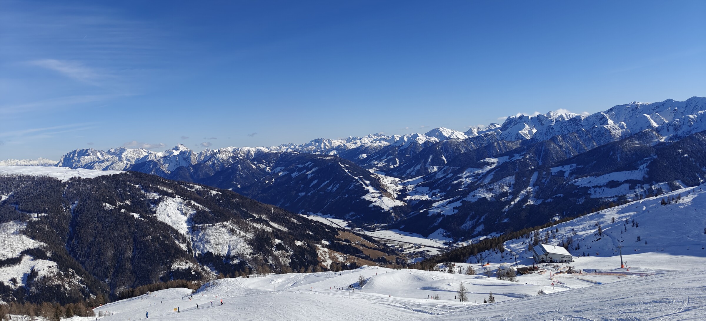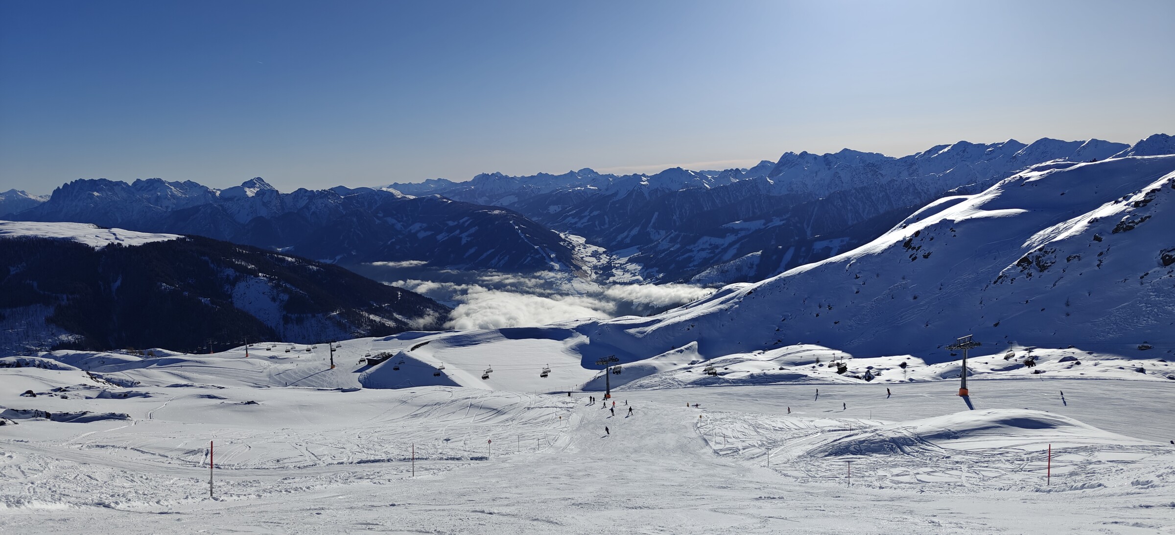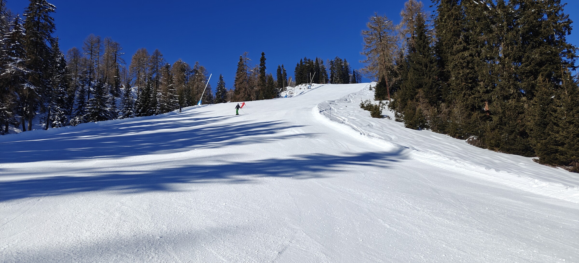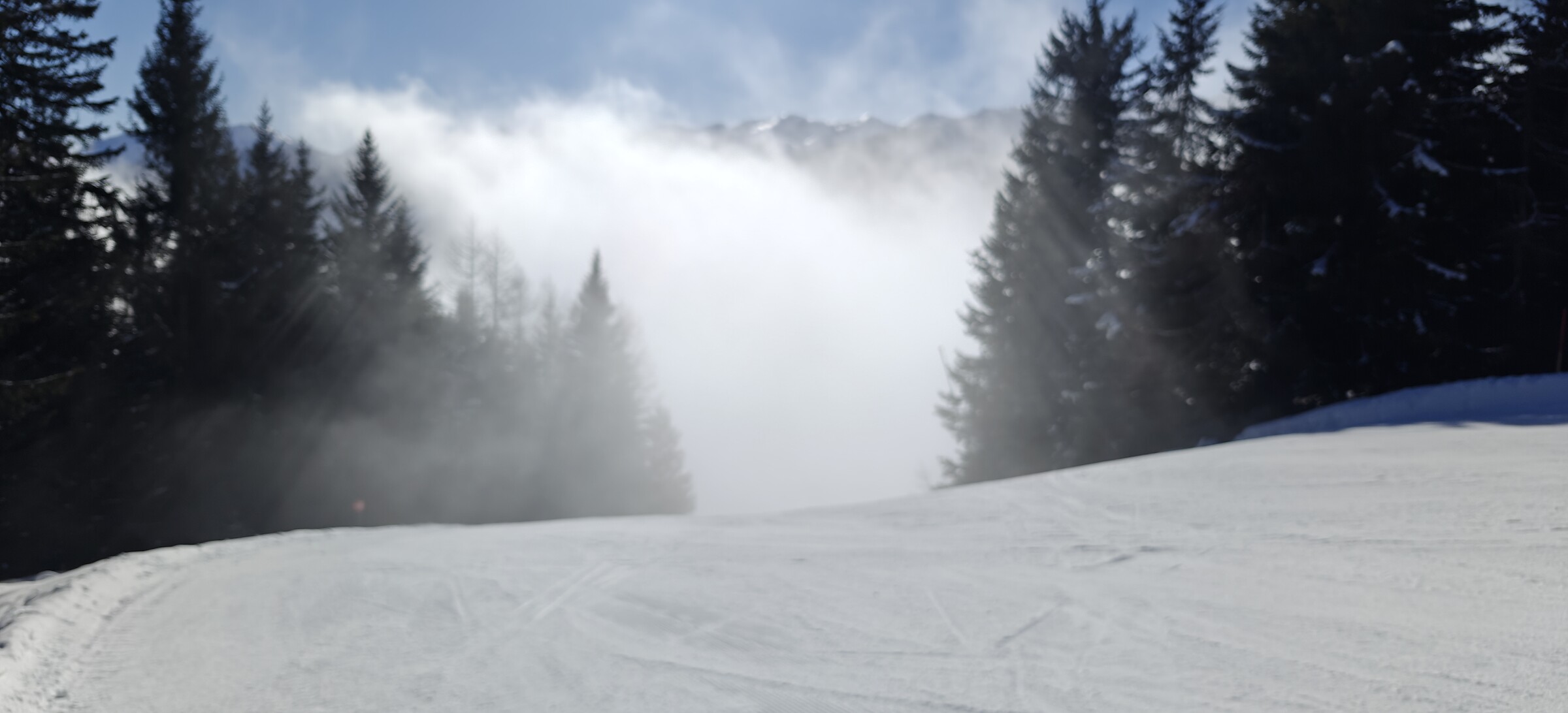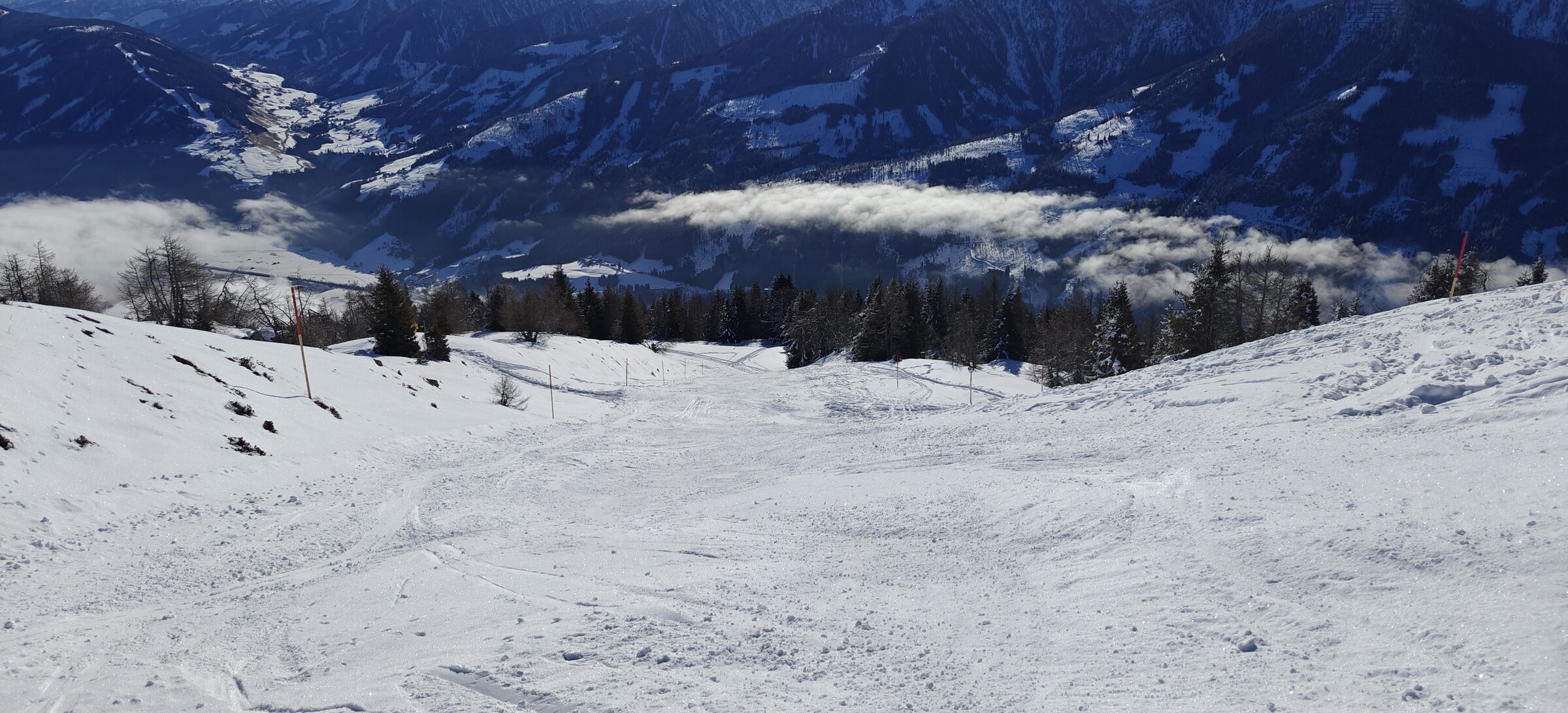 Am Dorfberglift angekommen wo ich noch nie zuvor war, nix los und vor allem kein Nebel - beim rauf fahren allerdings schon bemerkt irgendwie ist die komplette Piste für Renntrainings ausgesteckt und immer wieder schossen ein paar Rennläufer vorbei. beim Einstieg hat aber niemand von den Liftlern ein Wort gesagt.. oben angekommen der Liftler an der Bergstation zeigt auch nur einen Gruß aus der Kabine.. aber beim runterfahren gleich gemerkt daß Ich als "Ottonormalskifahrer" hier definitiv nicht erwünscht bin , denn die Trainer am Rand warfen mir seltsame Blicke zu.. um den Betrieb nicht zu stören bin ich halt ganz am Pistenrand abgefahren...danach habe ich angeschnallt und habe wieder zusammengepackt und begab mich Nach Sillian..