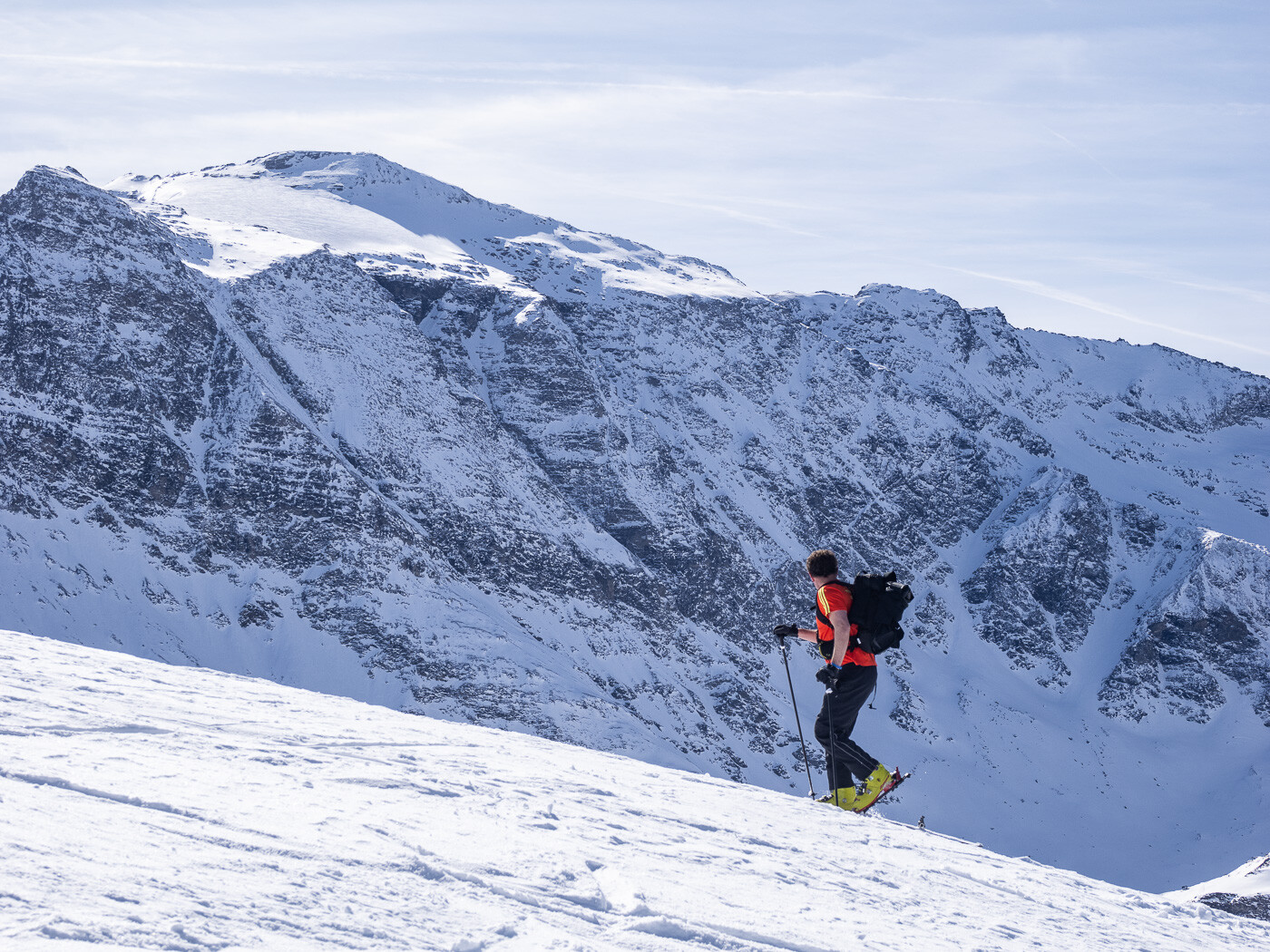 Unbekannter aber wegen seiner Position fotogener Tourengeher mit dem Schareck im Hintergrund