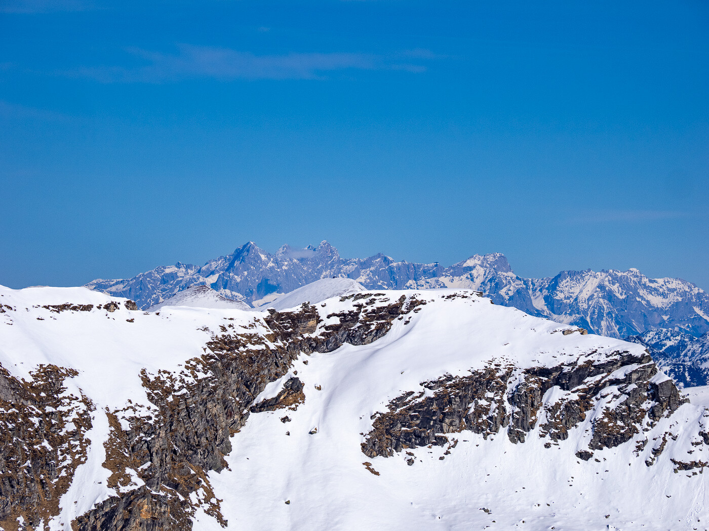 In vielen der nordexponierten Rinnen sind heute Tourengeher unterwegs.