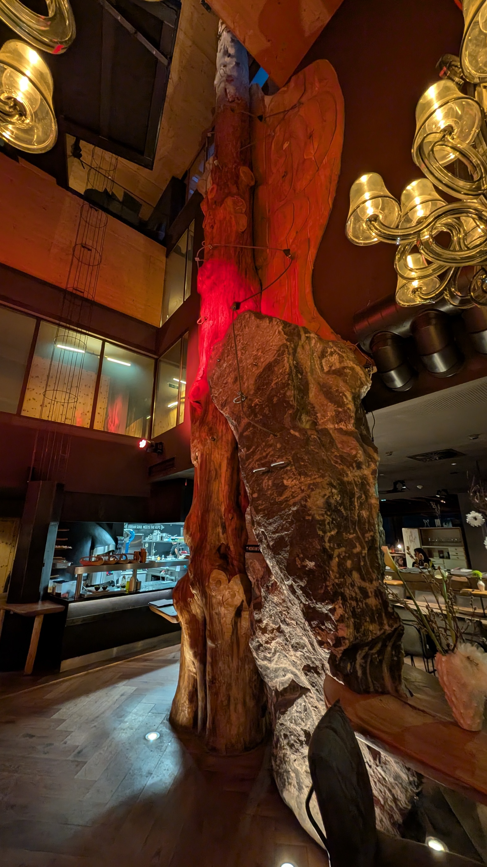 Das Restaurant besitzt dann ein durchaus funktionsfähig aussehendes Design-Highlight in Form eines Klettersteigs. Hätte ich das mal vorher gewusst, in meinem Auto liegt ein Sicherungs-Set, aber ich bin nicht selbst gefahren. Das Essen ist exzellent, die Gesellschaft wie den Tag über sowieso und ich habe irgendwann dann auch nicht versucht zu verheimlichen, das meine Augen ein wenig schwer werden. Mir wird aber zu Gute gehalten, ich hätte auf meinen "Zahnstocher-Ski" ja auch mehr arbeiten müssen. Daran liegt's - ganz bestimmt. ;-)