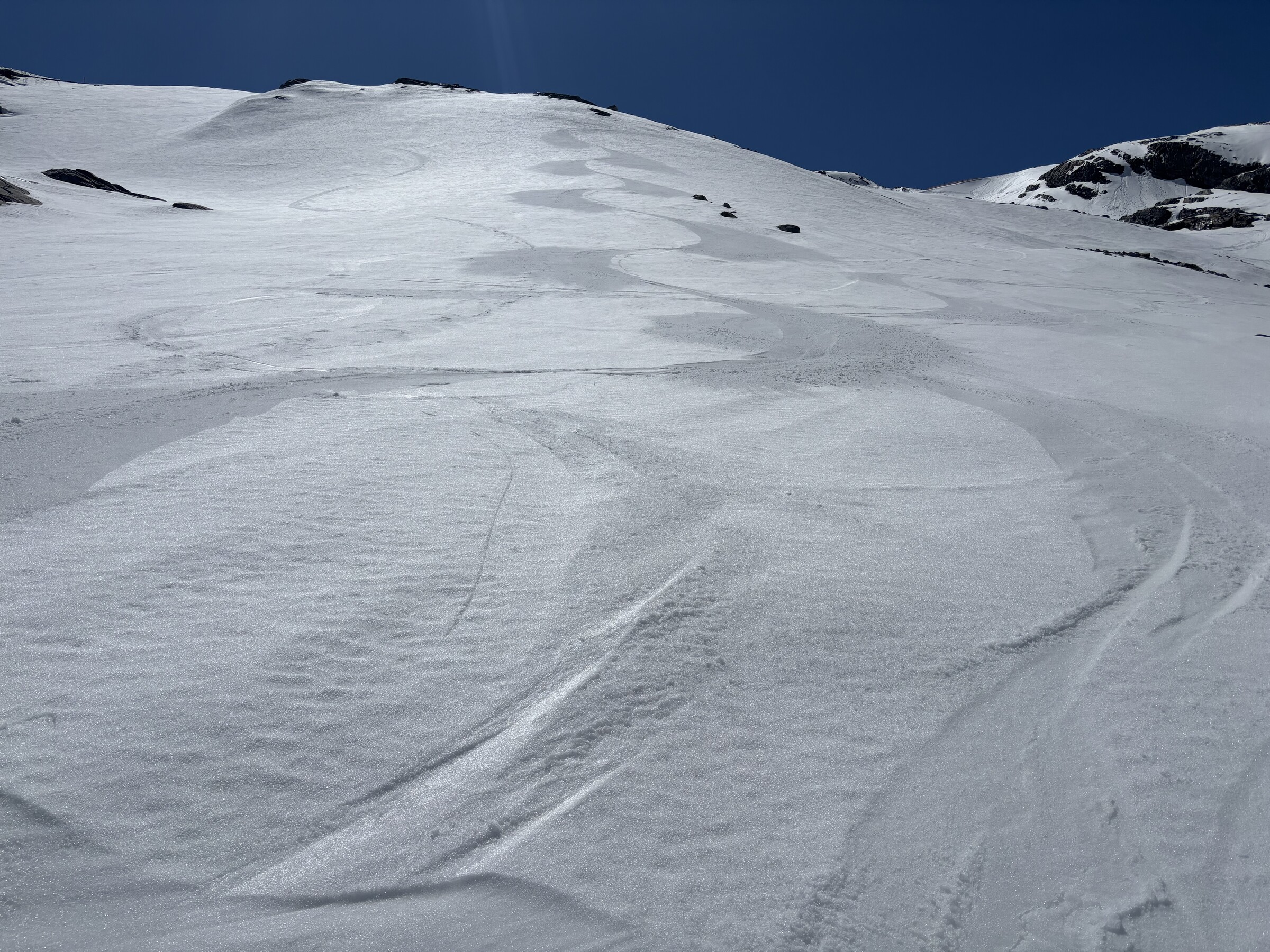 (9) Im Bereich L1 deutlich zerfahrener - aber alles nach Neuschnee oder im Sulz und nicht durch Firnfahrer (die das Gelände ja nur minimal abnutzen)