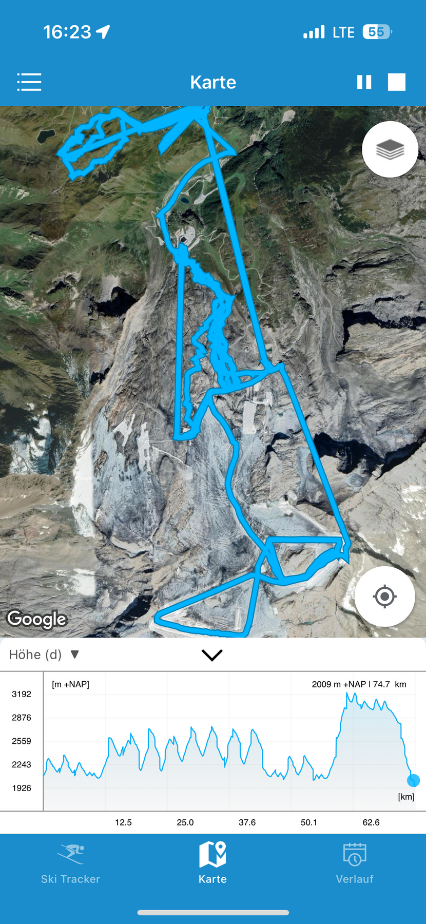 Dank der L1 gestalteten sich die Fahrten deutlich bequemer und der Hang konnte so etwas weiter oben gestartet werden - das ganze dann auch 8 mal. Somit von etwa 2630 bis 2300m perfekter Firn von 10.30 bis 13.00 wobei es wohl auch schon früher gegangen wäre, nur probierte ich da noch am Tuxerjoch herum.