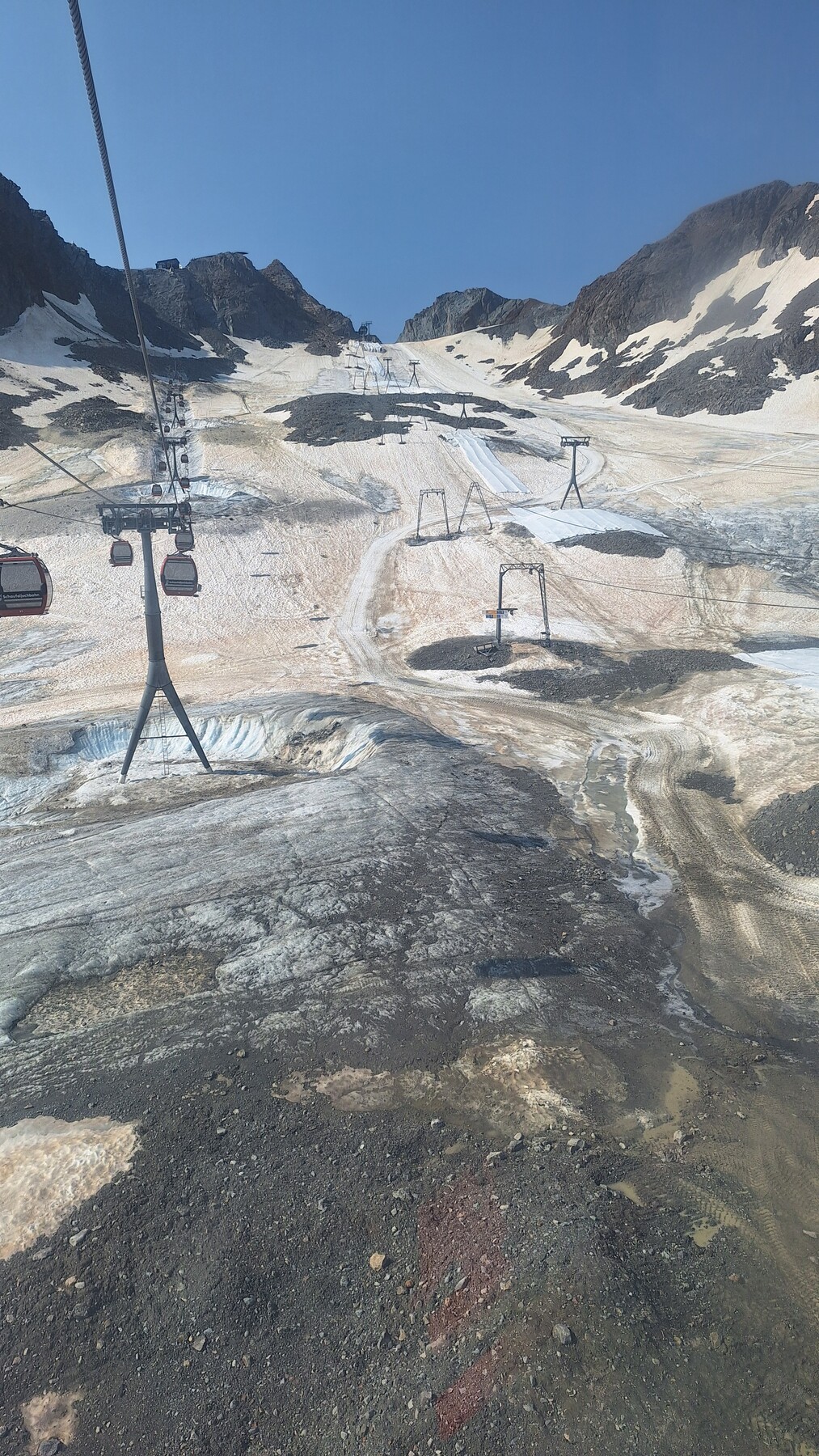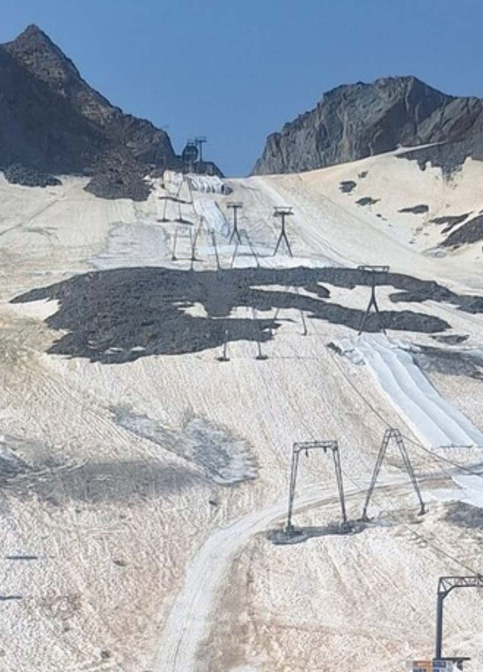 Ich meinte allerdings gehört zu haben, dass hier nur gewartet wird bis der Gletscher soweit abgetaut ist damit man an dieser Stelle einen kurzen Sessellift aufbauen kann ohne die Stützen auf Gletschereis bauen zu müssen.