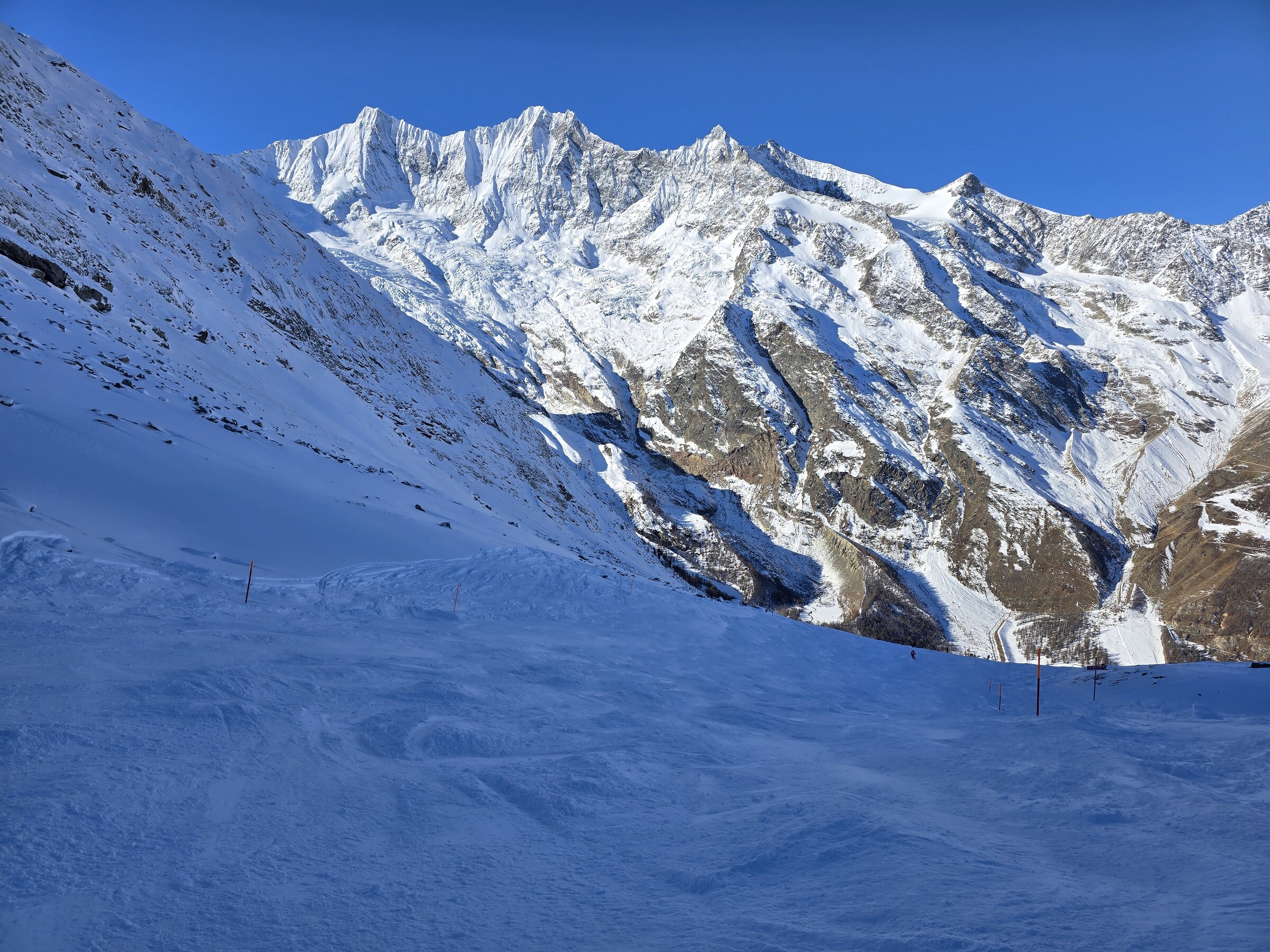 Heute in Saas-Fee herrliches Wetter und super Bedingungen. Die Schneequalität ist sehr gut und die Pisten sind gut präpariert, Schnee ist nicht zu hart (vor allem am Morgen). Es ist nicht zu voll (wenig Wartezeiten an den Anlagen). Alpin Express 1/2, Metro, Spielbodenbahn, Längfluh PB, Längfluh SB, Morenia, Gletscherskilifte geöffnet.