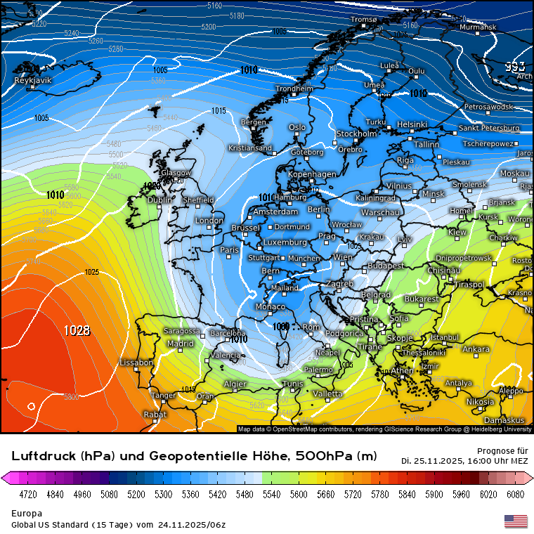 Richtig 20km nördlich Bodensee 20l Regen und in den Bergen Föhn, sehr kurios.Gleitweggleiter hat geschrieben: 24.11.2025 - 09:10 Schon eine etwas kuriose Situation, an die ich mich so nicht erinnern kann: Westströmung, wo dann aber entlang des bay. Alpenlandes östlich des Allgäu ein kleinräumiger Föhn dagegenhält mit Sonnenschein in Innsbruck, sodass das Niederschlagsgebiet im Allgäu stehenbleibt.