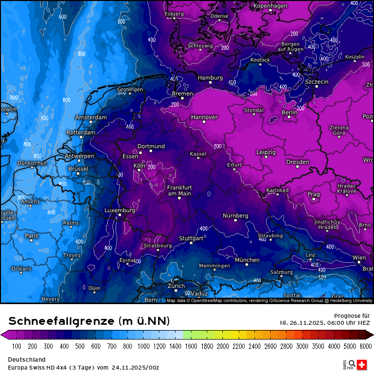 Die SFG wird von Polen kommend bis in tiefe Tallagen sinken: SFG Dienstag 6 Uhr, SFG Mittwoch 6 Uhr und SFG Donnerstag 0 Uhr.