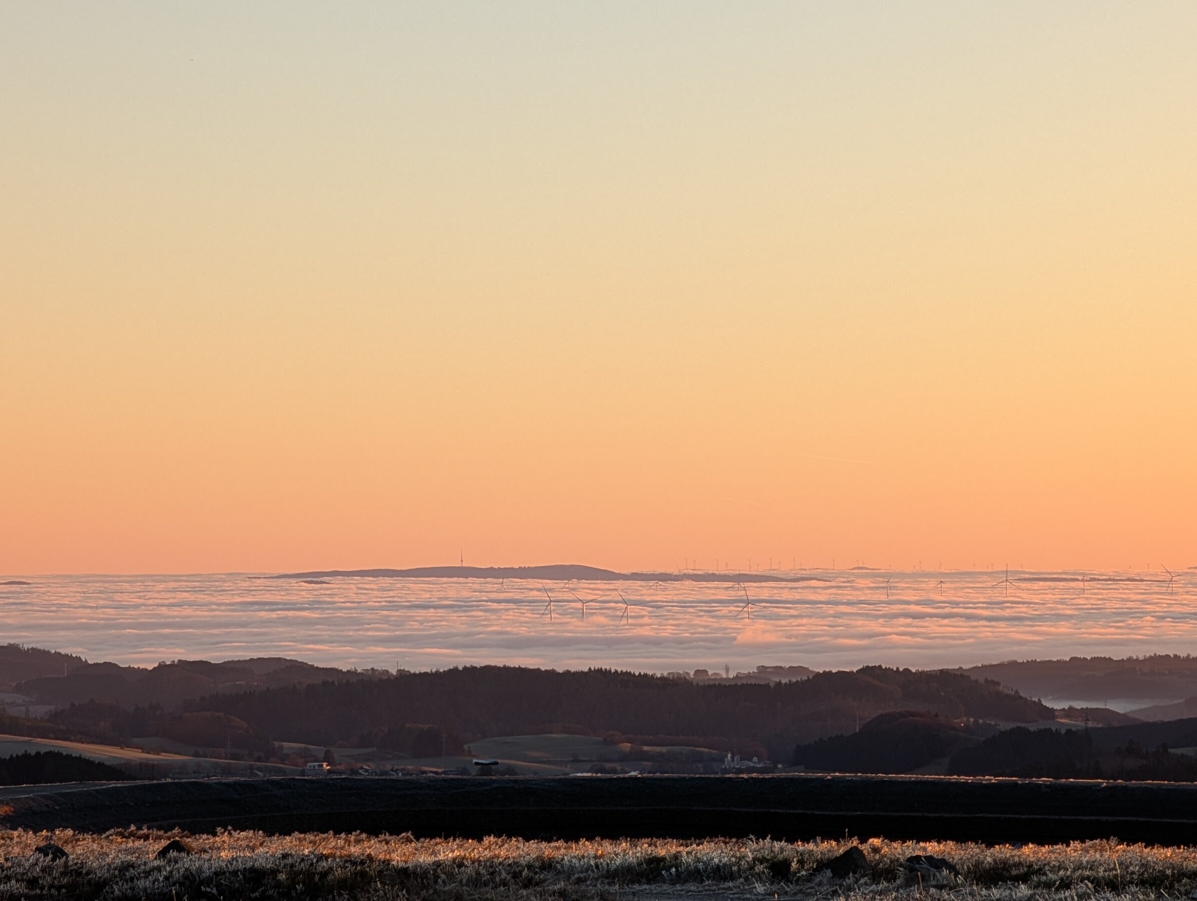 Eine ordentliche Inversions-Lage grade im Sauerland vorherrschend. Heute Nacht wurde in Willingen bei 4 Grad und 18% Luftfeuchtigkeit beschneit. Sogar am Ettelsberg.