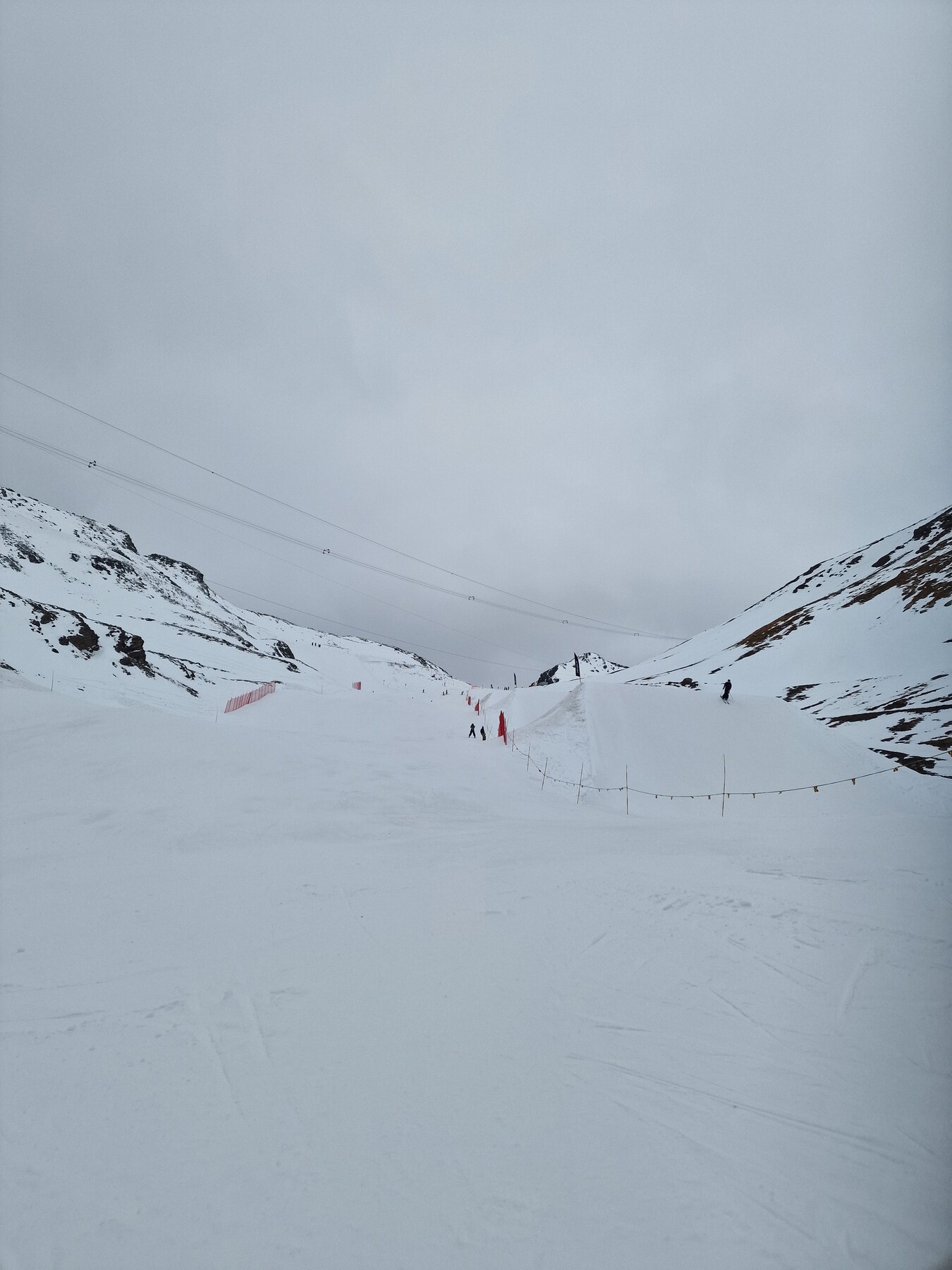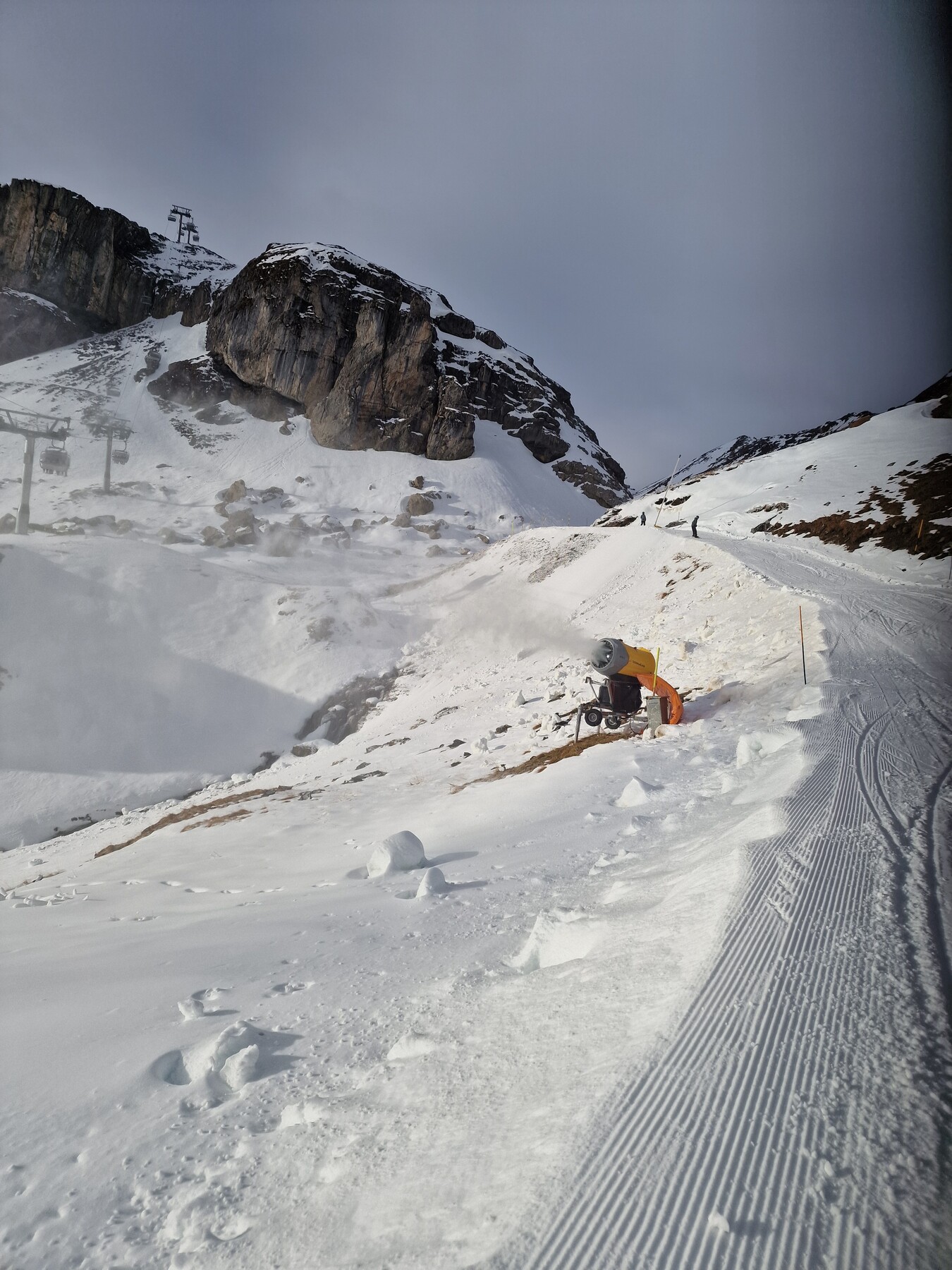 Es wurde heute auch im Grenzbereich beschneit. Man will wahrscheinlich das Angebot im oberen Skigebietsteil möglichst schnell erweitern. Vielleicht klappt es ja mit einer Öffnung von Muttleren zum nächsten Wochenende.