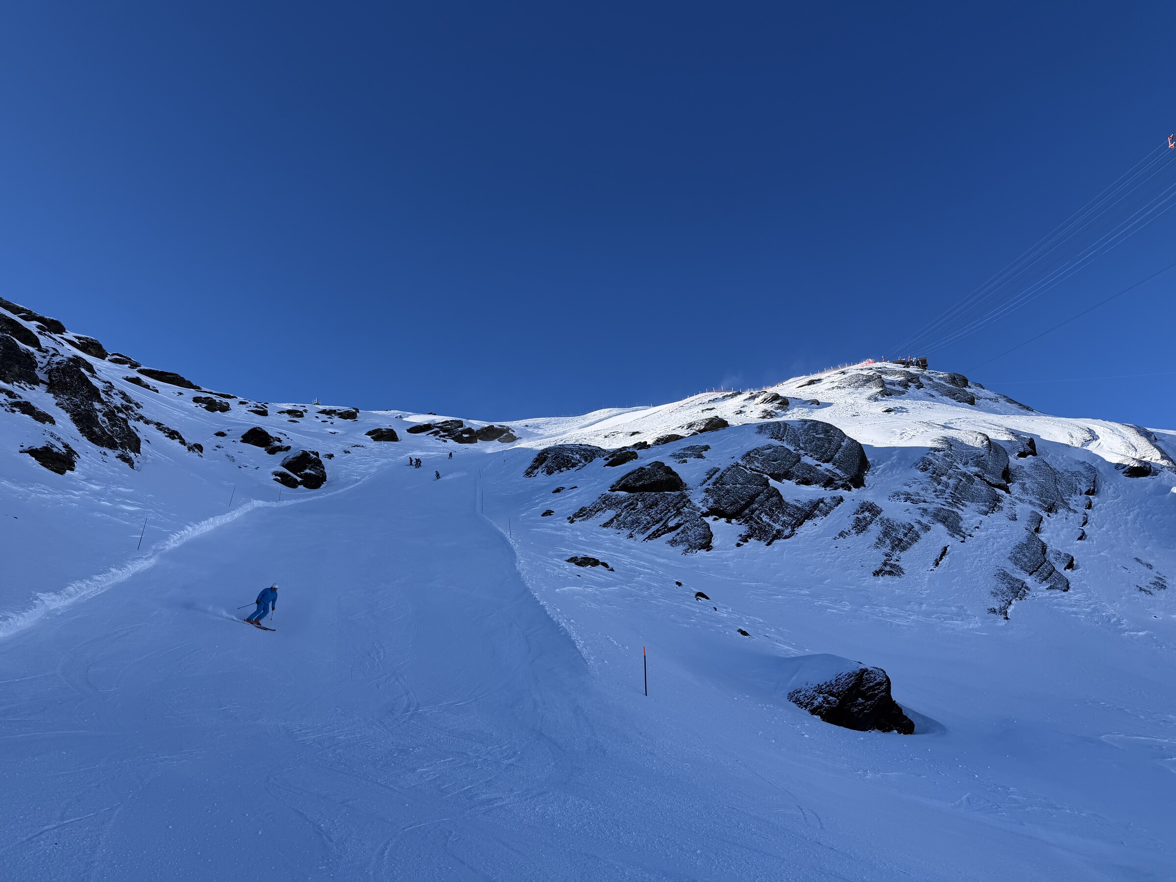 Erwähnenswert ist vielleicht noch, dass die Pisten logischerweise schnell zerfahren wurden und für mich auch zu weich waren. Gegen Mittag kam aber teilweise die harte Unterlage im Engetal und Muttleren hervor, letztere auch mit ein paar Steinen und Gräsern. Dafür war die Gipfelabfahrt kurzzeitig Genial, aber wegen dem Riggli-Sessel halt auch mühsam zu wiederholen. Sollte man weiterhin auf Herbstbetrieb setzten, sollte man mal drüber nachdenken dort die Förderleistung zu erhöhen, wobei ich nicht verstehe wieso sich die Leute nicht besser mit Muttleren verteilen. Umso besser für mich, ich fuhr unzählige Male dort.