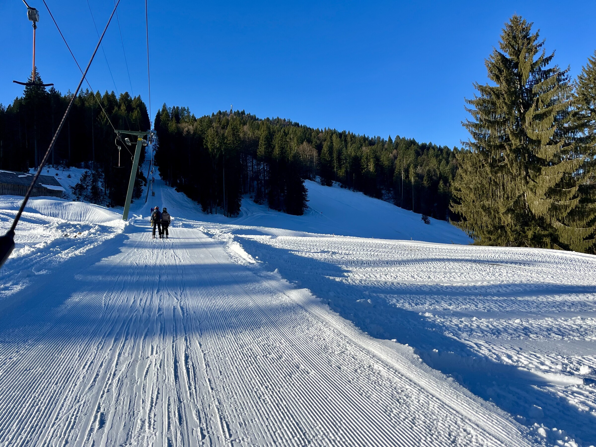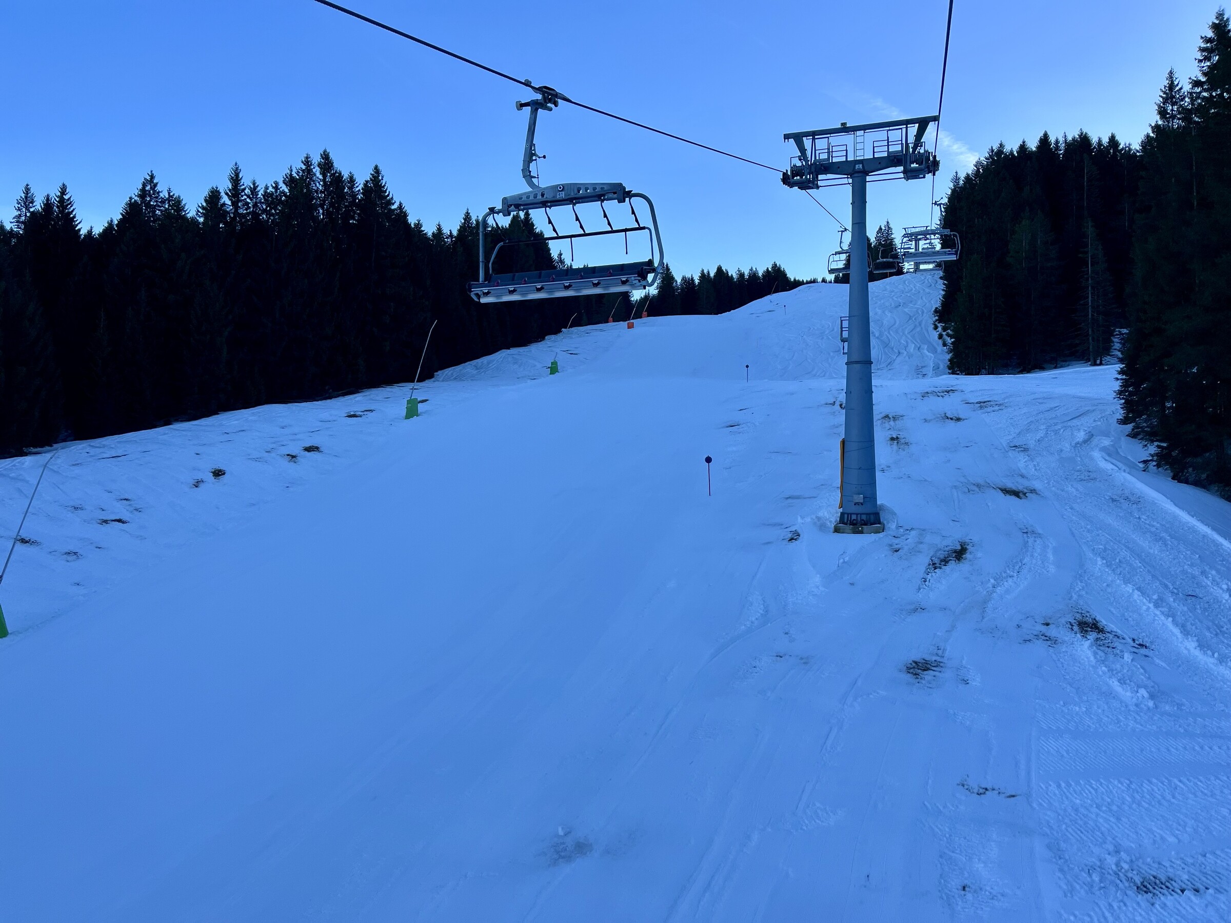So gelungen erlebt man die Verbindung aus Maschinen- und Naturschnee sonst nur in der Schweiz. Absolut herausstechend dabei: Die „Roten“ am Schwarzenberglift sowie der unterste und einzig offene Abschnitt der genialen „Schwarzen“ (FIS-Standard). Dort kann man bei wenig Verkehr wie gestern dank günstiger Nordwest-Exposition auch nachmittags noch voll fliegen lassen. 🥶