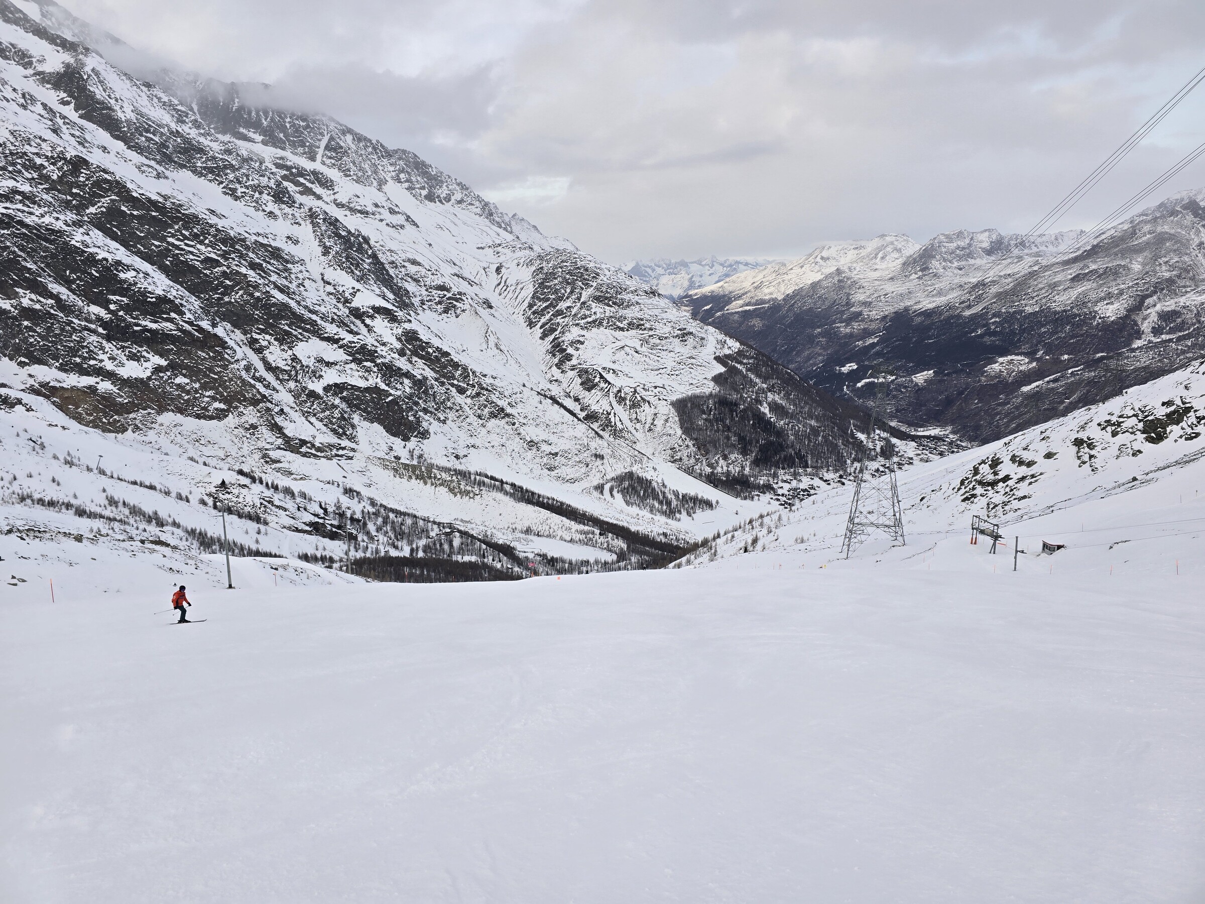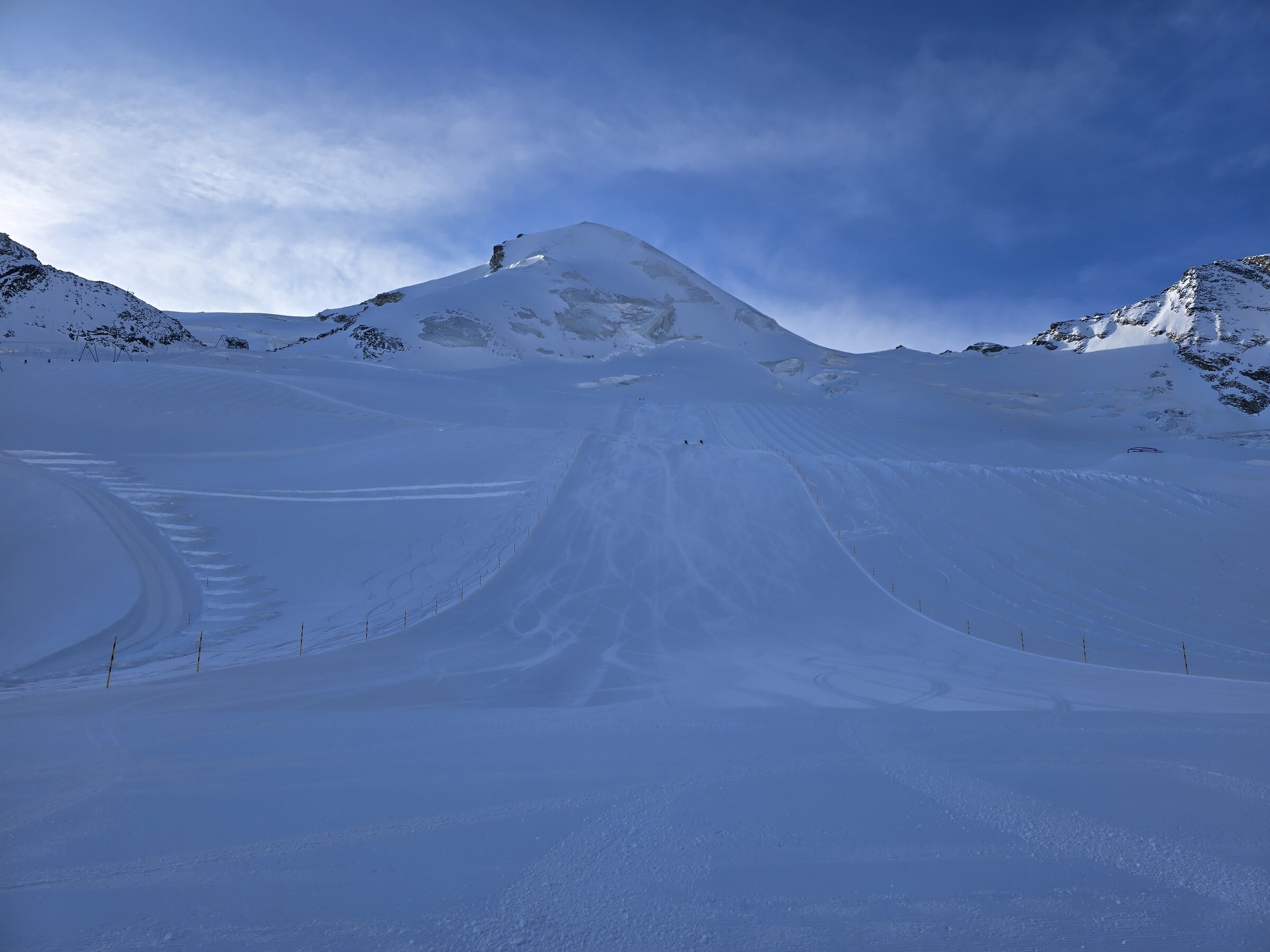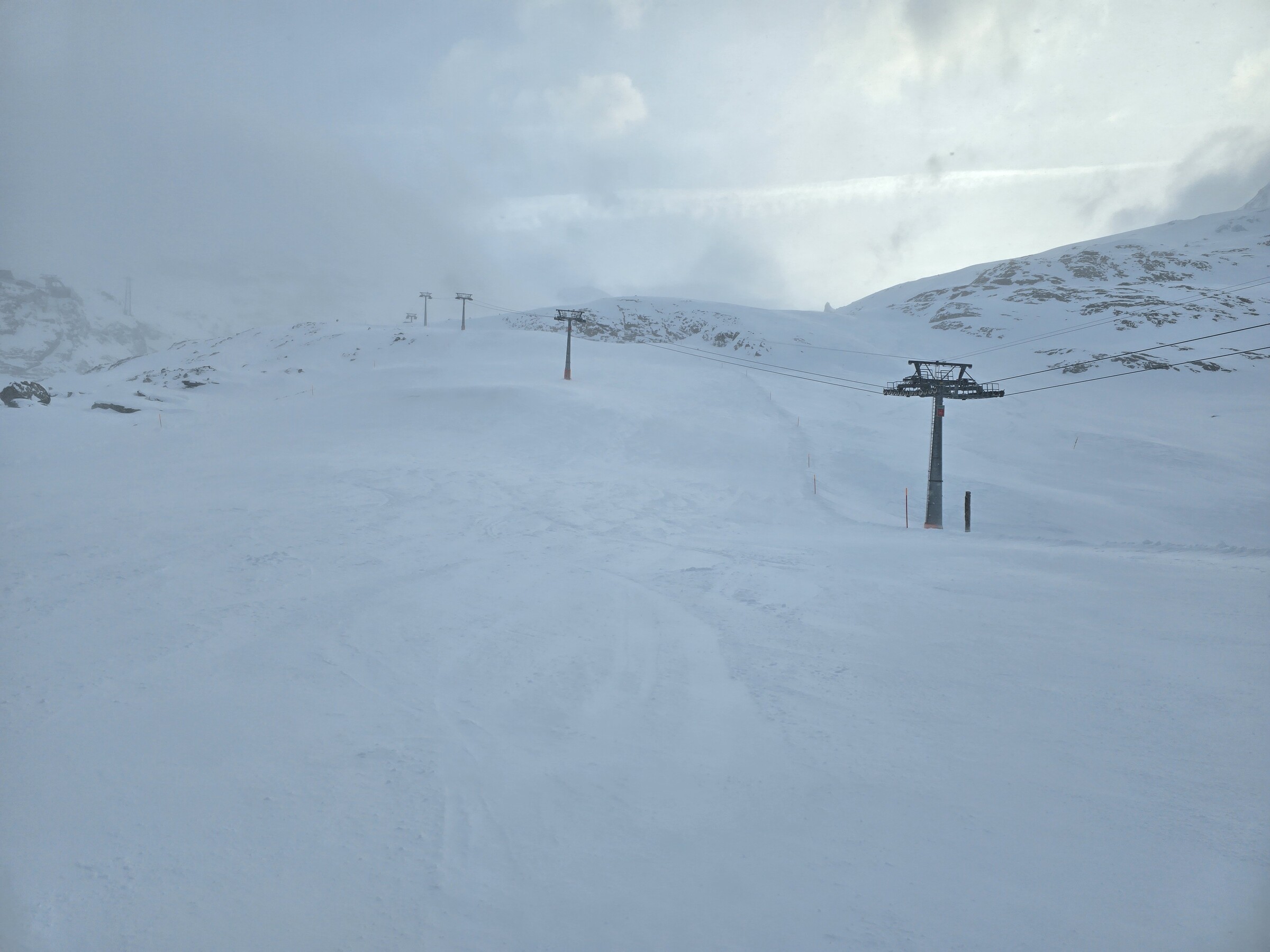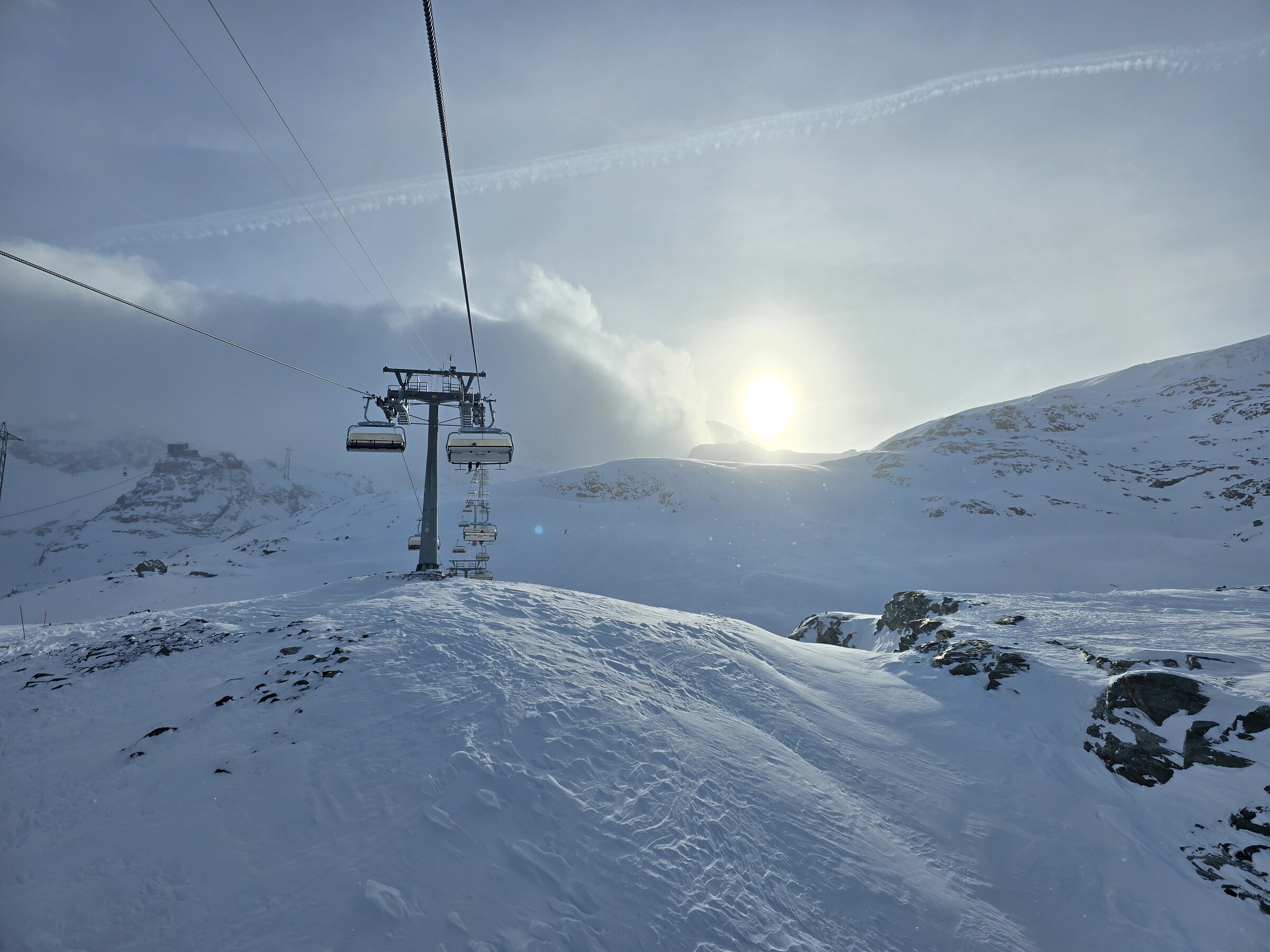 Auf den oberen Gletscherliften dann kein Andrang. Grund dürfte die bittere Kälte sein, irgendwo zwischen -15 und -20. Sogar die Skis rutschen schlecht.