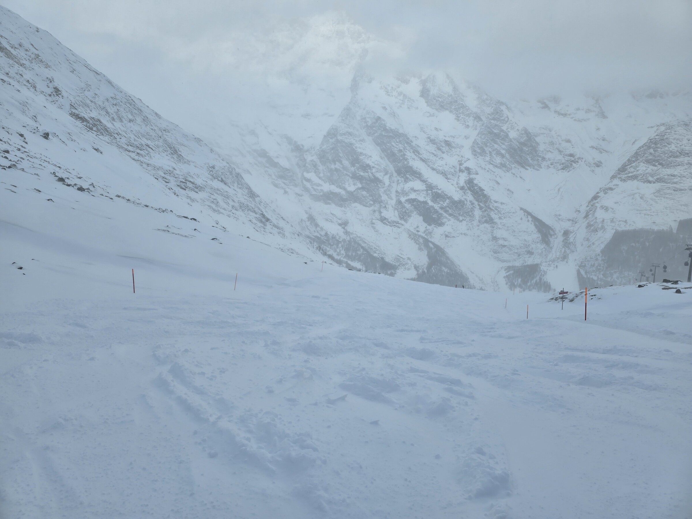 Spielboden fährt nur sehr langsam. Wohl wegen dem Nadelör Längfluh. Mitlerweile gar nicht. Ich denke ich schaffe so um 13:00 dann eine Abfahrt. Felskinn fährt auch nicht. An der Metroalpin standen die Leute draussen, deshalb lief ich nach hinten zu Spielboden. Das war aber wohl ein Fehler.