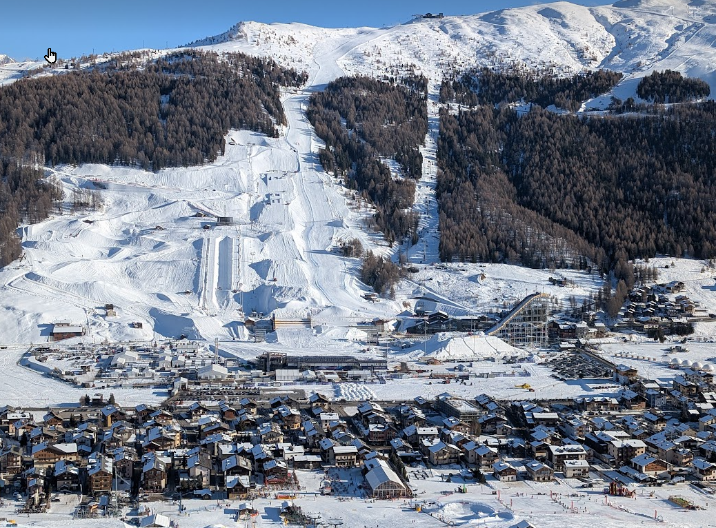 Blick auf die Wettkampfstätten am Mottolino / Livigno: