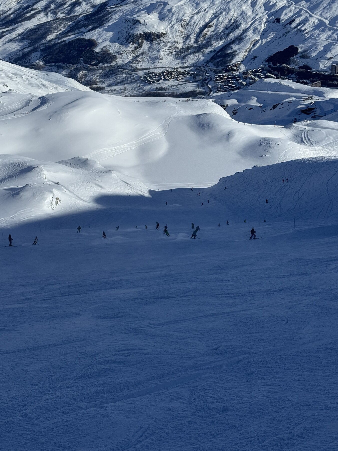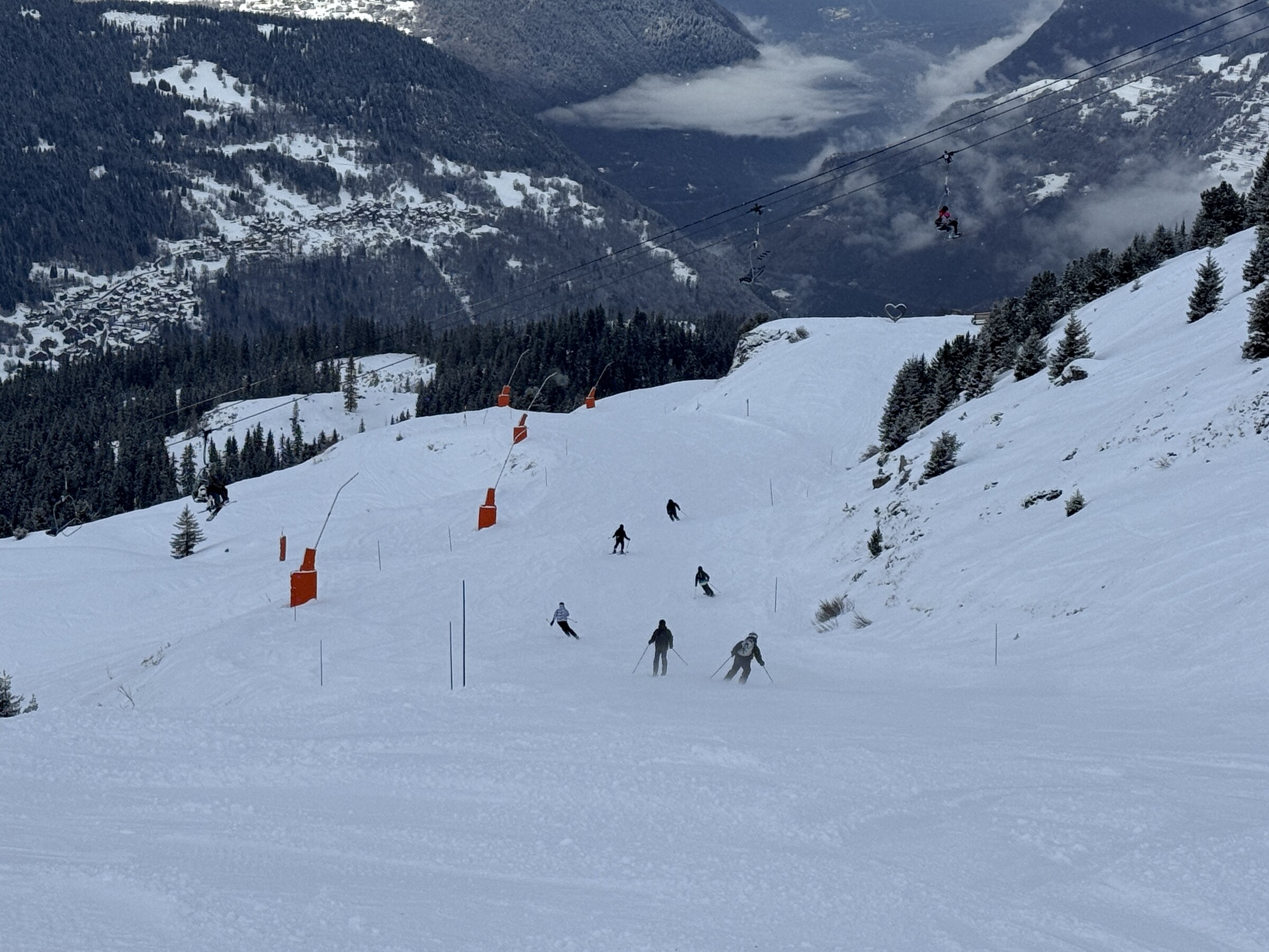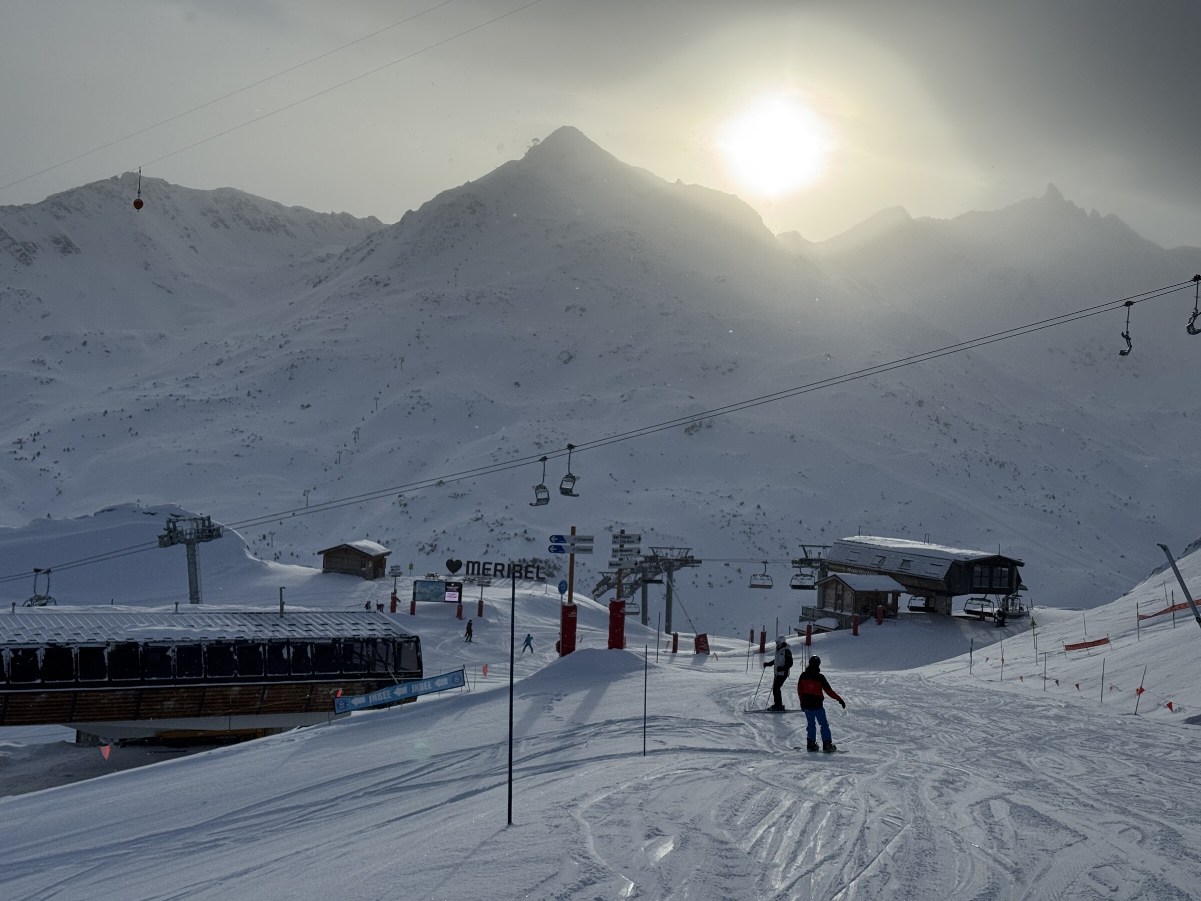 Das letzte Mal war ich 2002 in Meribel, aber es war viel zu warm und regnete bis auf 2000 Meter. Folglich waren die oberen Regionen ziemlich voll und es ging recht zu auf den Pisten.