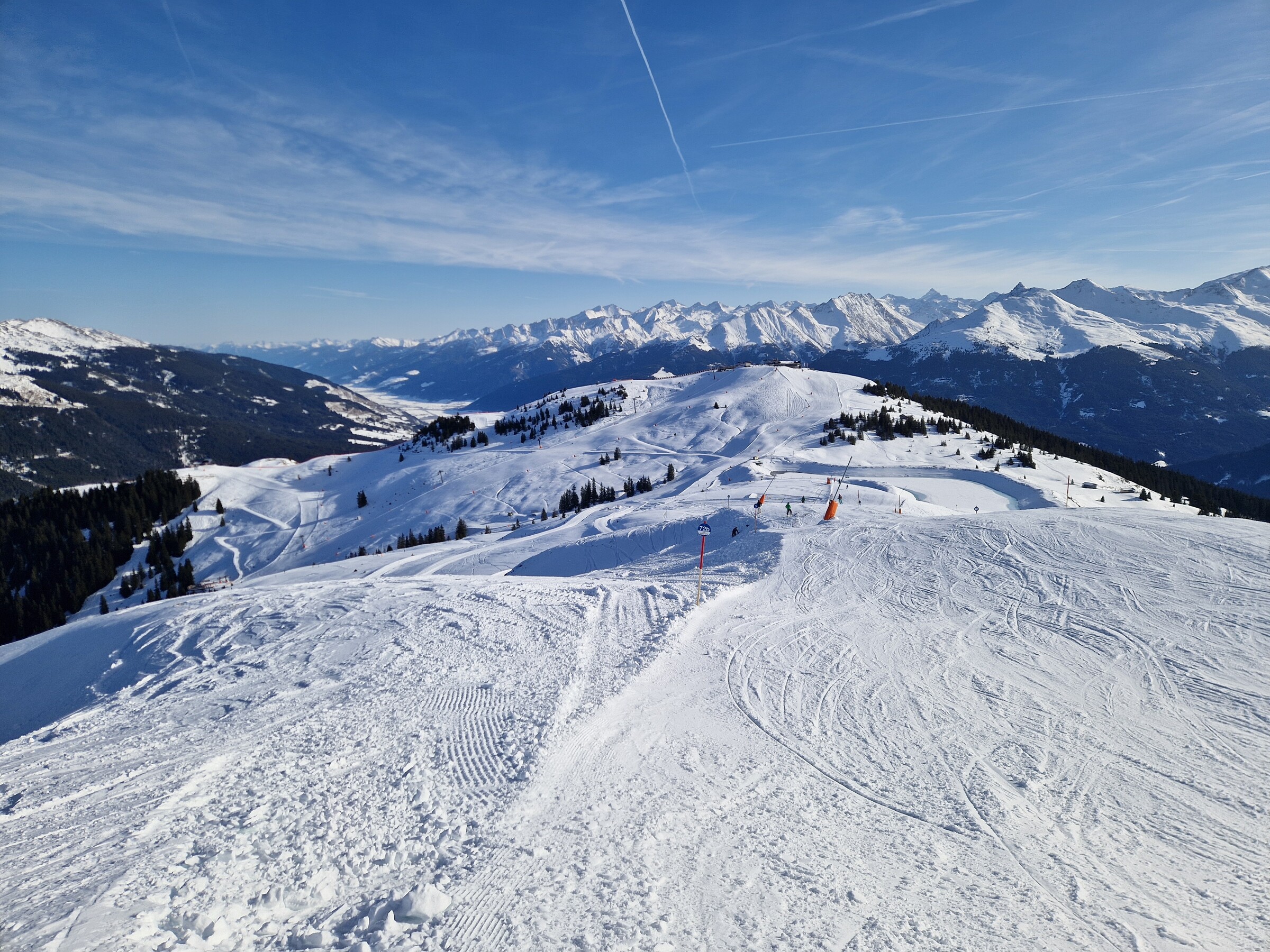 ^ Abfahrt Brunn - Pengelstein 1 ^ Blick zum Resterkogel, die direkte dort war wieder sehr gut zu fahren ^ Besagte Stelle an der Resterhöhe, muss man vielleicht ranzoomen, um das besser zu sehen. Hinter der Kuppe perfekt, um sich die Ski zu "bearbeiten" ^ Resterkogel ^ Panoramabahn, sieht besser aus als es war um 14 Uhr