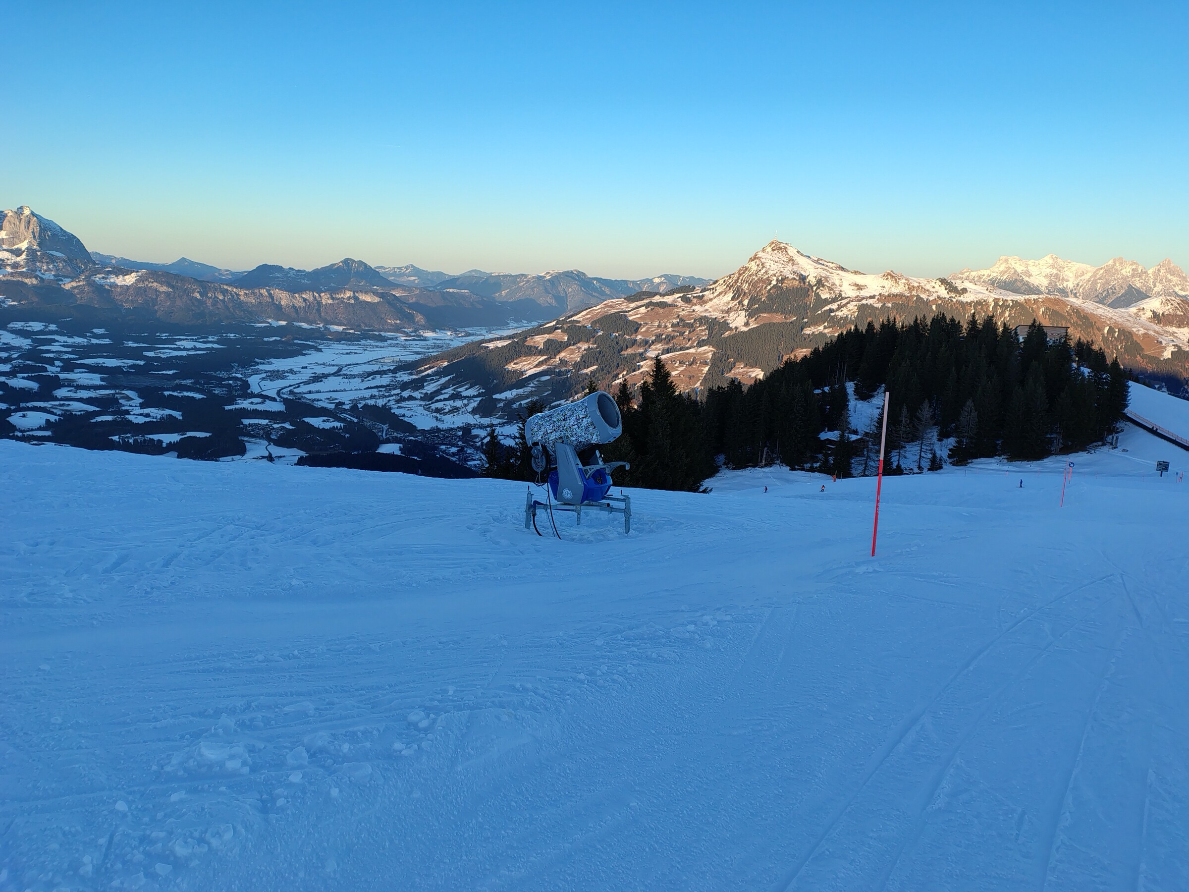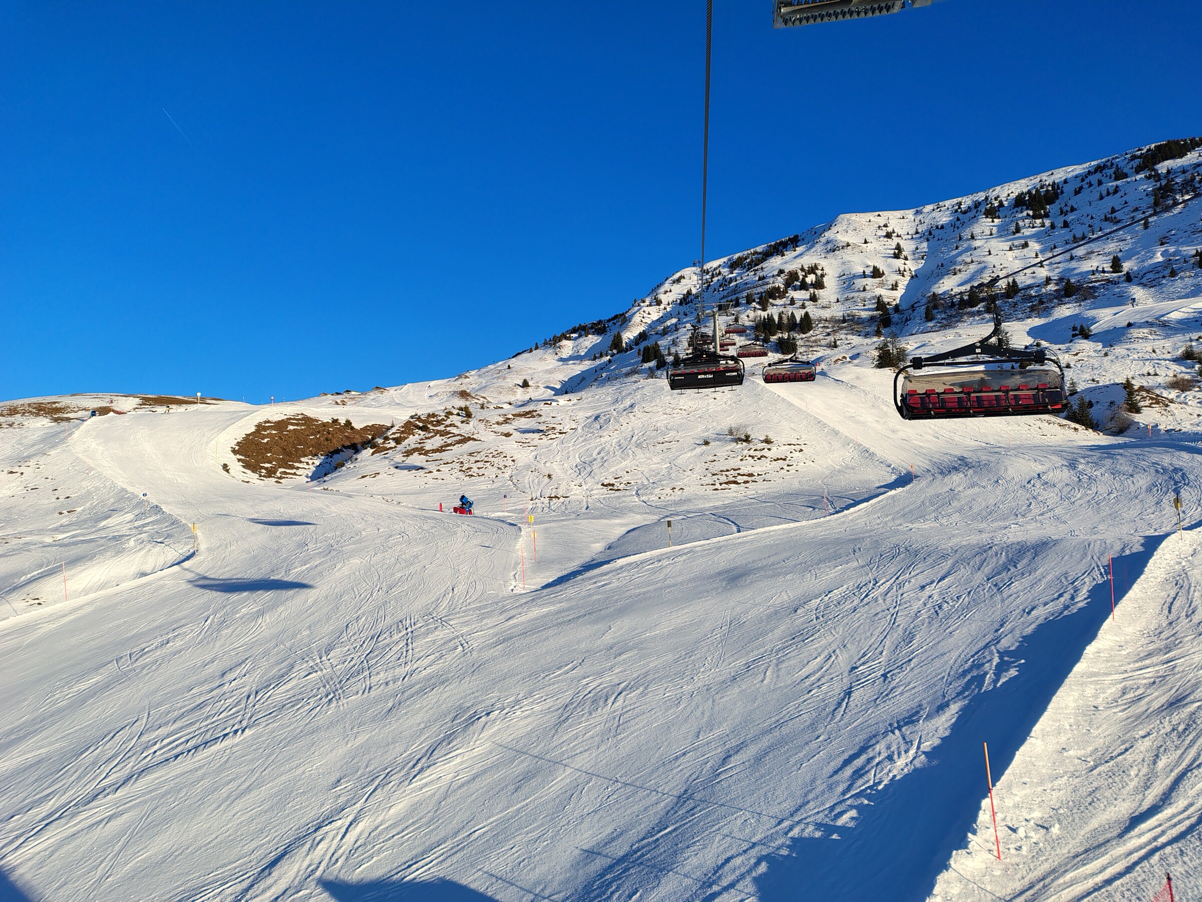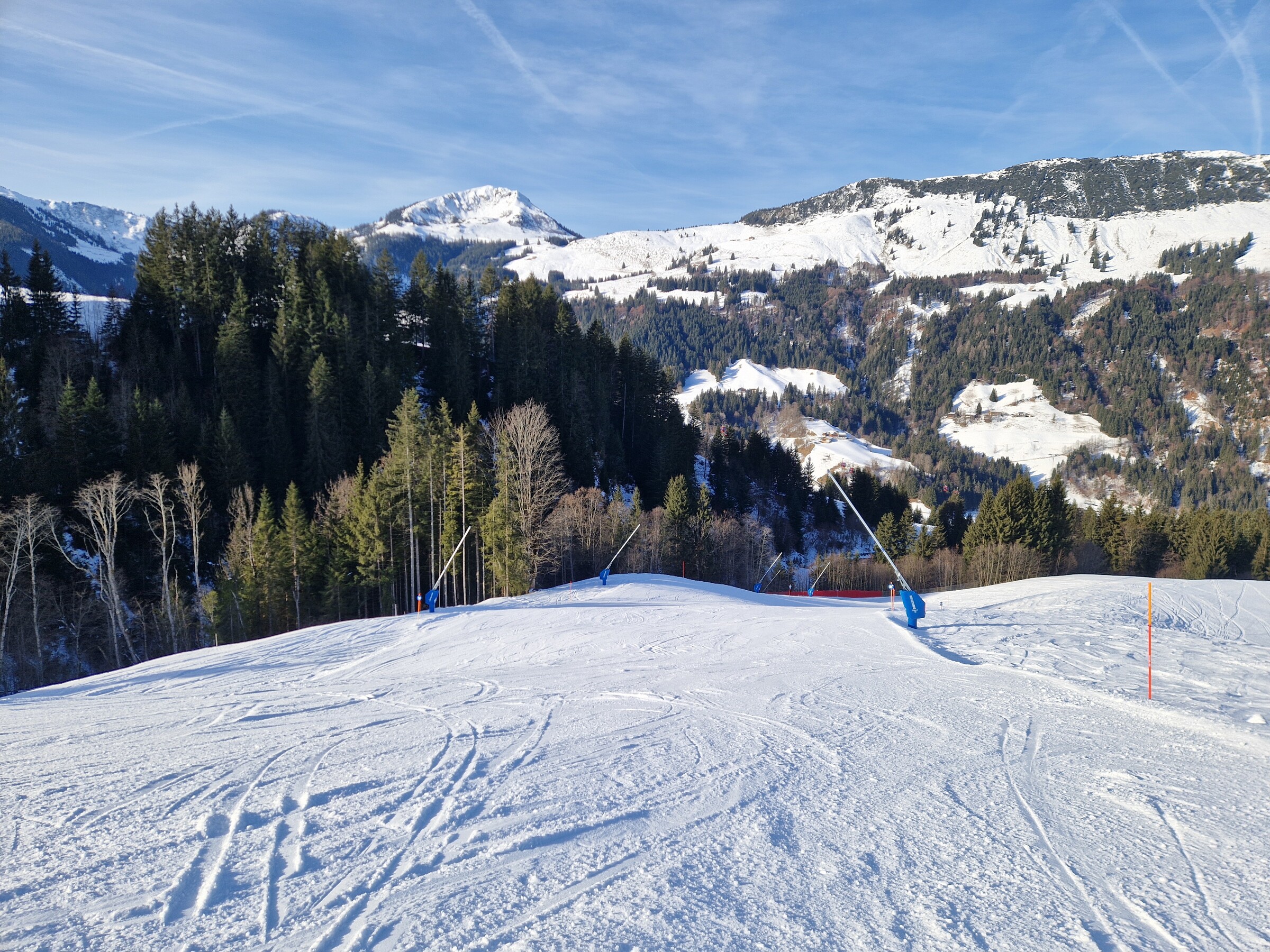 Nachfolgend noch ein paar Fotos, allesamt von der Fleckabfahrt, dort wurde im unteren Teil mit fast allen Kanonen bis etwa 10 Uhr beschneit, danach war Schluss.
