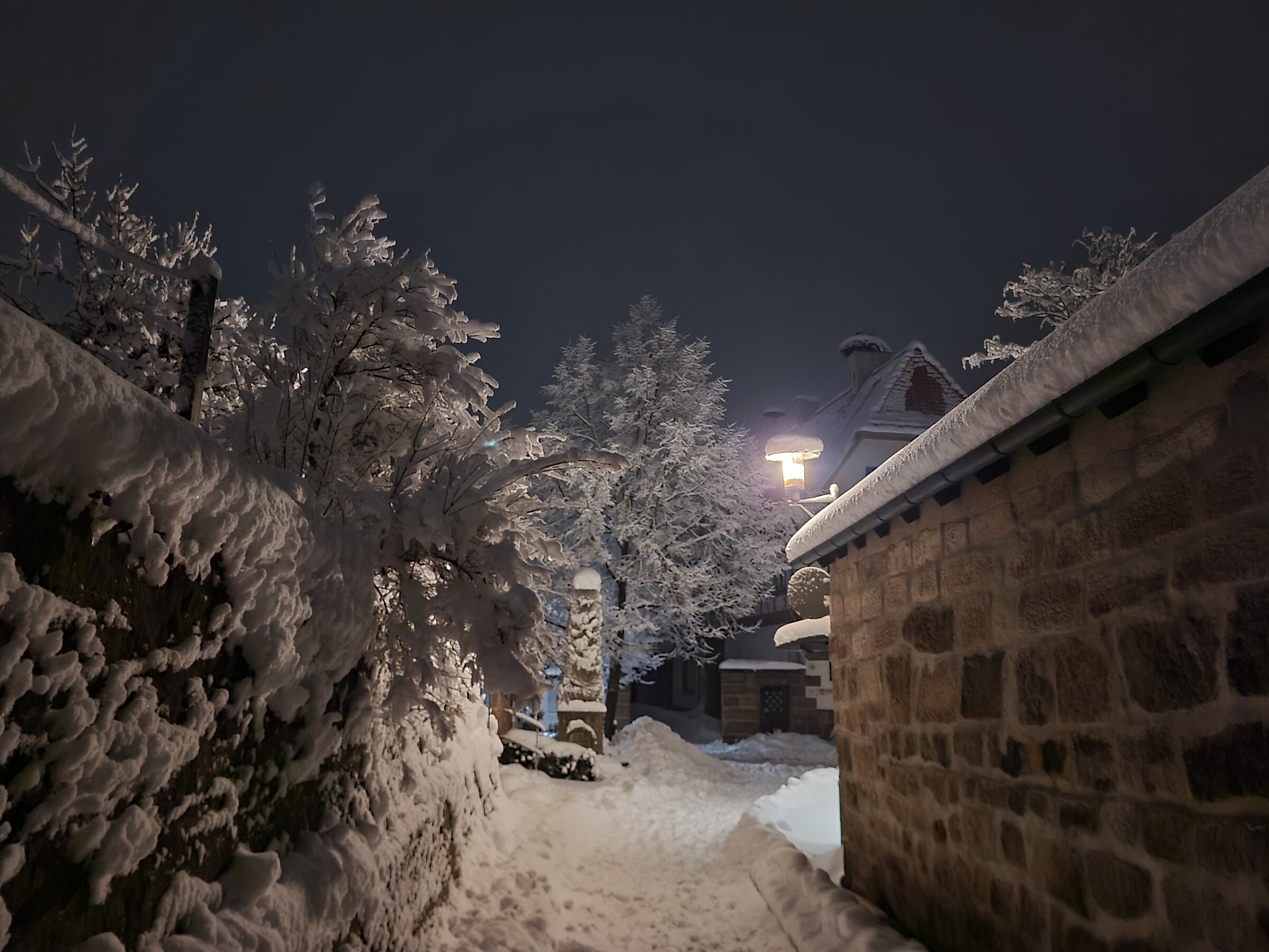 Dazu Eisbruch im Wald und tagsüber teils gesperrte Straßen aufgrund steckengebliebener LKW gehabt. Edit: Seehöhe übrigens 330m
