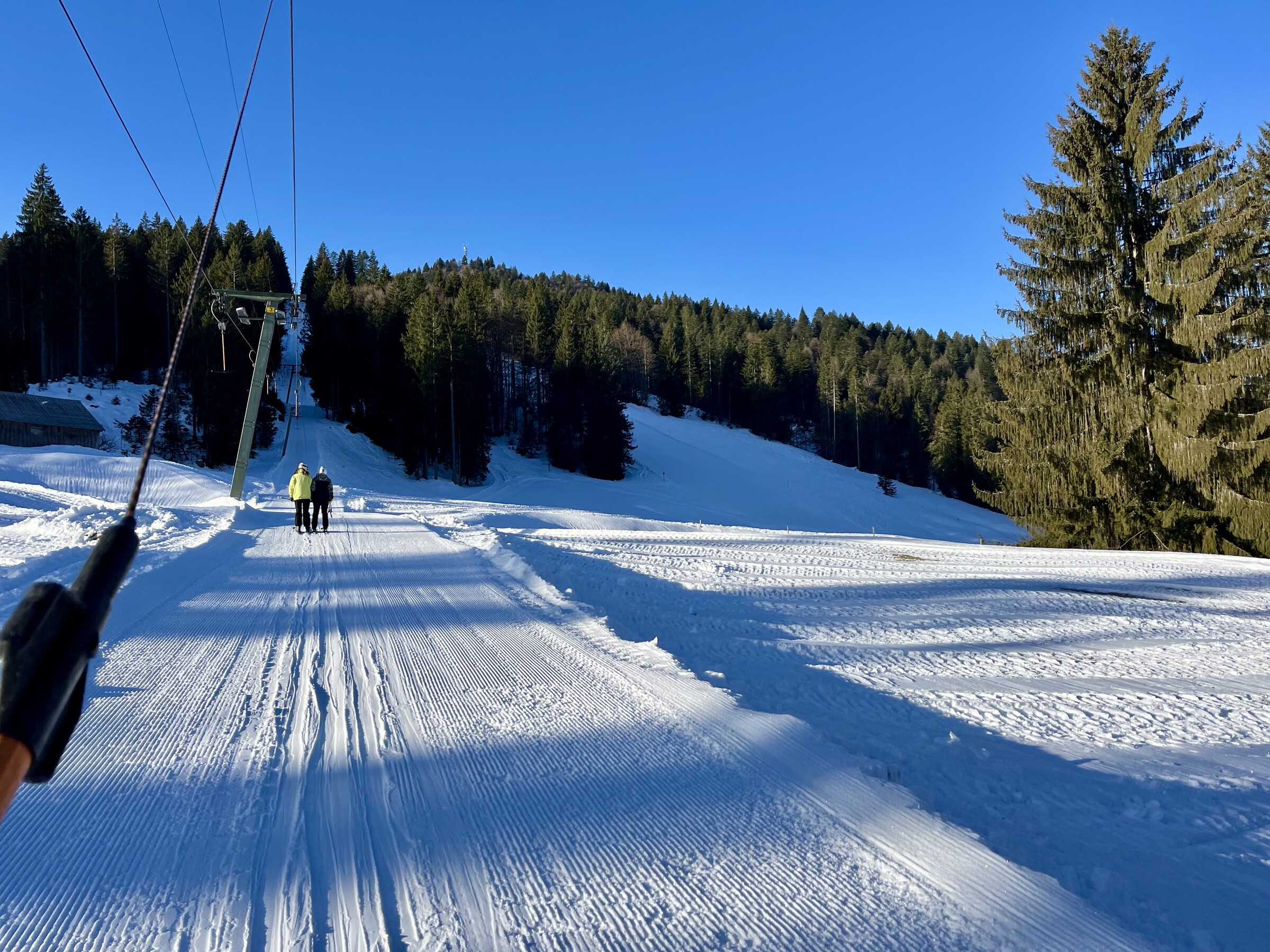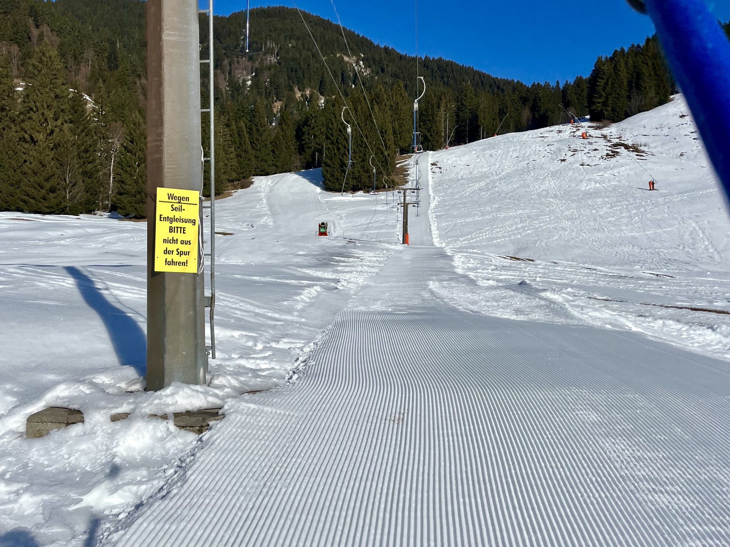 Mittags als alle beim Essen waren noch ein paar mal Schwarzenberglift und auch noch 1x Hochschelpen, die Pisten waren hier aber bereits ziemlich durch.