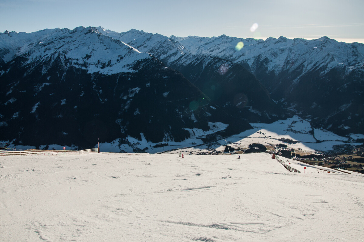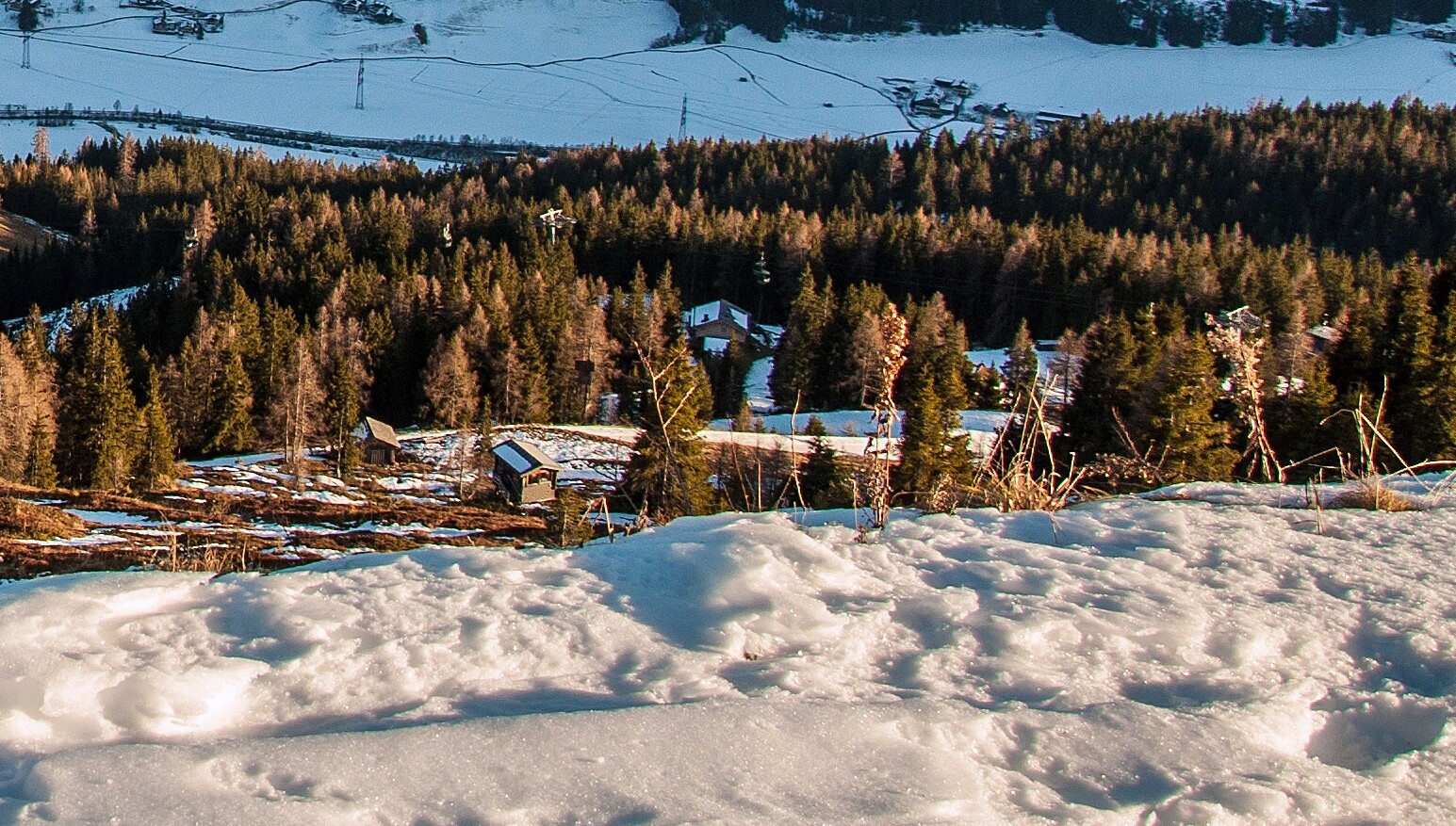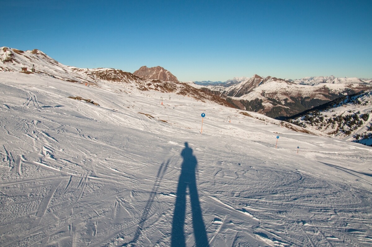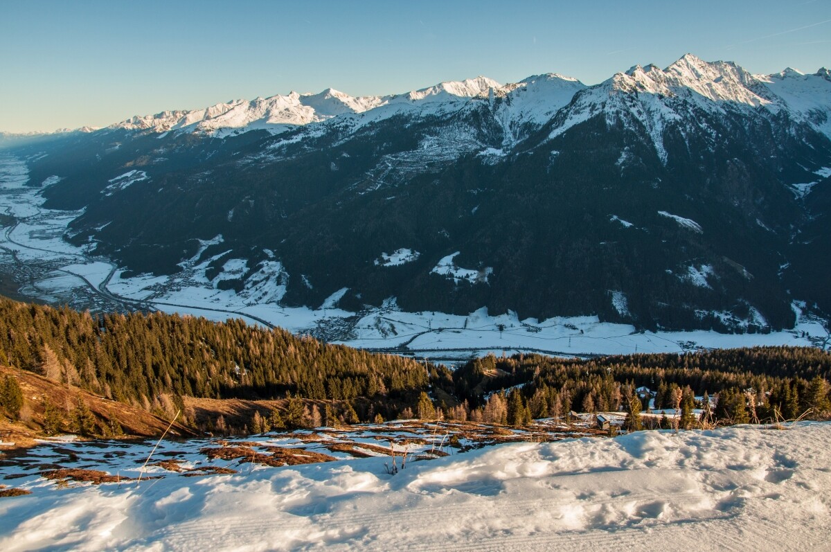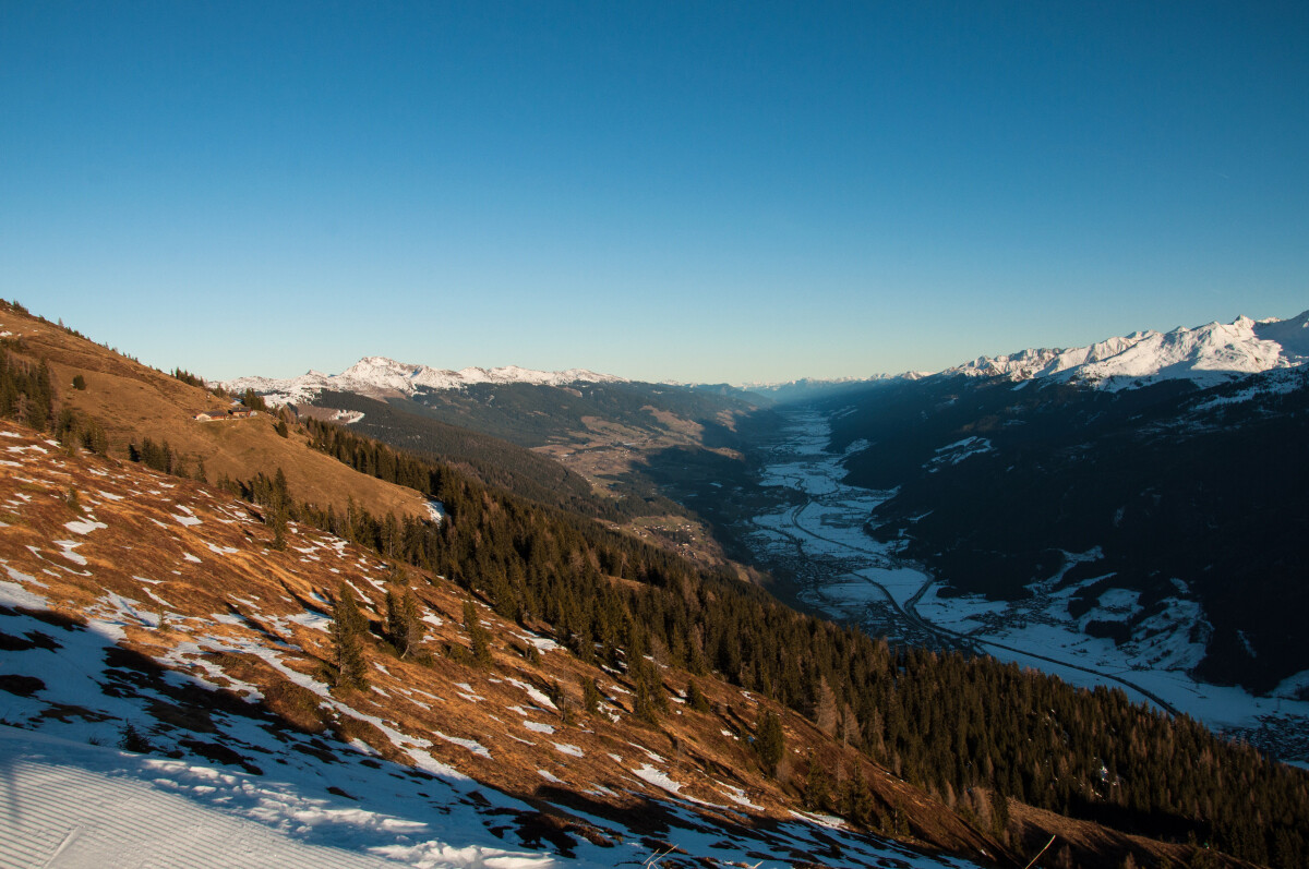 Der Ausblick auf das Tal ist etwas Besonderes – auch wenn man öfters in den Bergen unterwegs ist. Hier – das hat mir gleich so gut gefallen, dass ich erst einmal ewig mit der DSLR-Kamera hantierte anstatt Ski zu fahren.