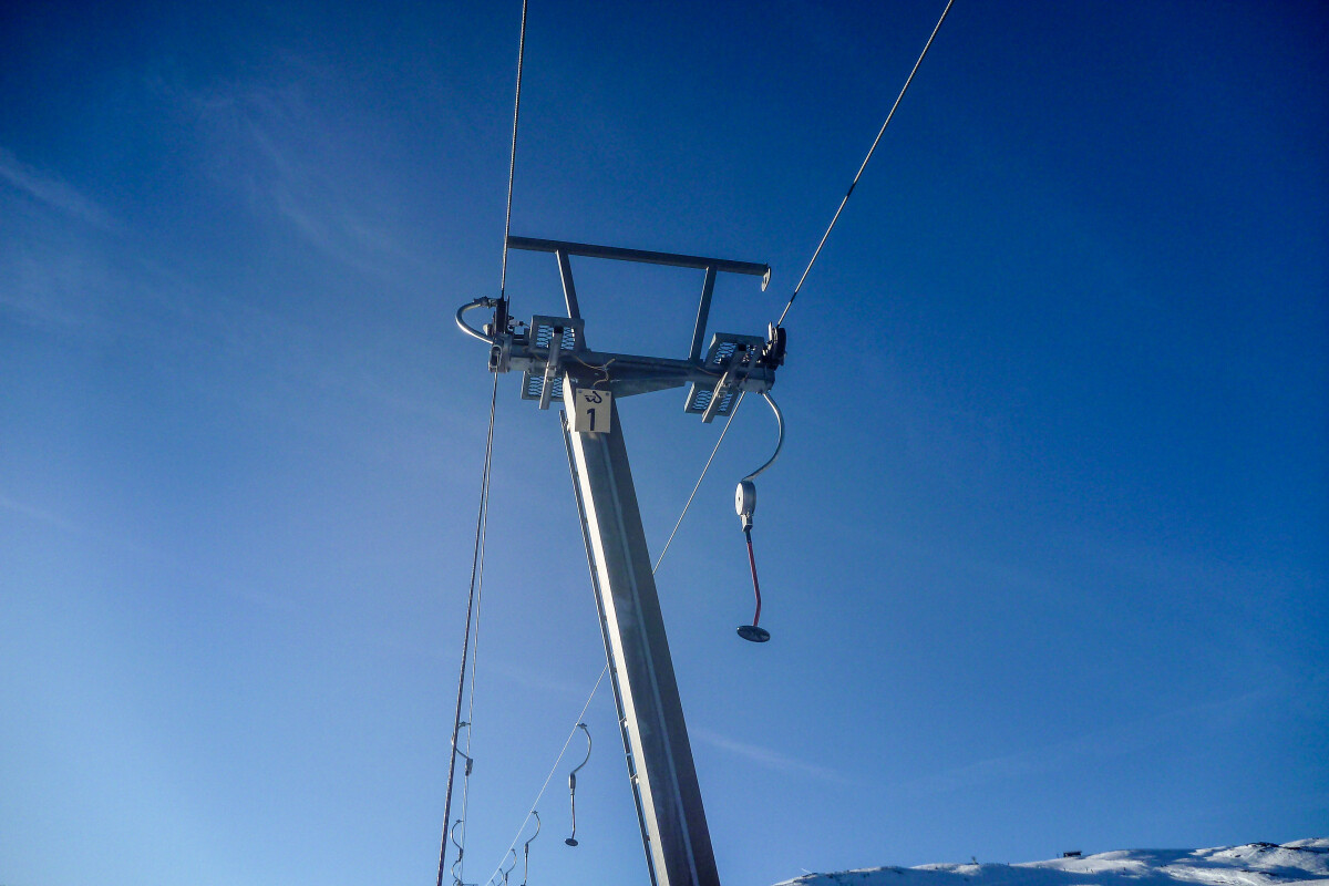 Der Braunkogellift, der letzte gescheite Schlepper oben im Gebiet (vom Premislift unten einmal abgesehen). Hersteller Wito und Baujahr 1990. Das wunderte mich. Zuerst dachte ich, dass der vielleicht 1990 einen noch älteren SL-Vorgänger durch Beibehaltung der alten Stützen ersetzt hat.