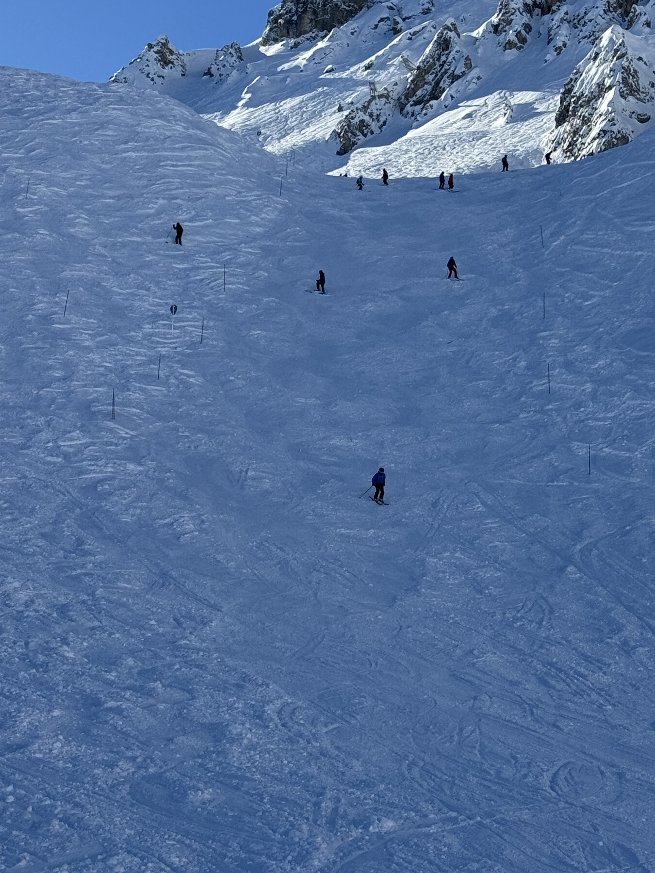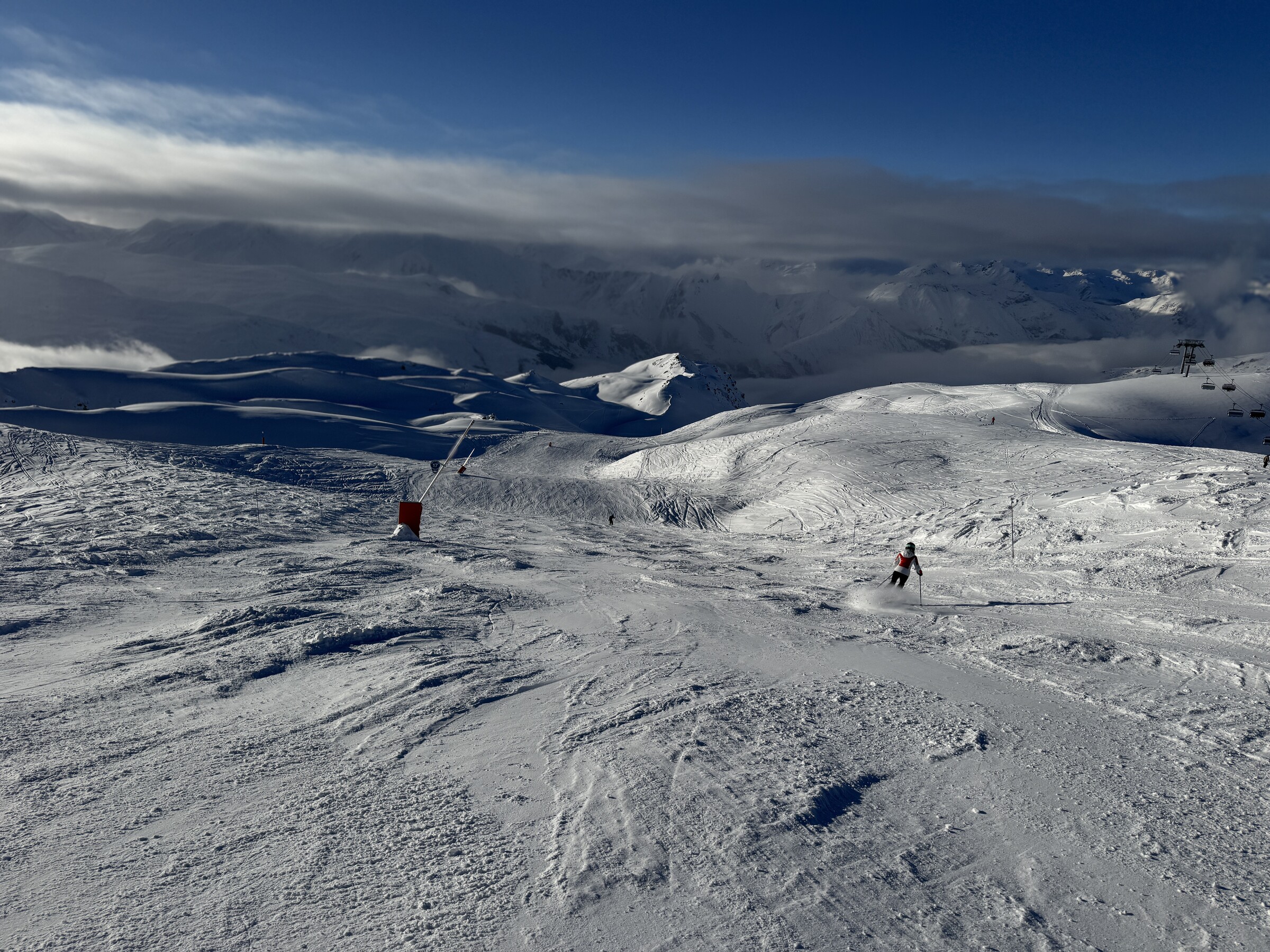 Das letzte Mal war ich 2002 in Meribel, aber es war viel zu warm und regnete bis auf 2000 Meter. Folglich waren die oberen Regionen ziemlich voll und es ging recht zu auf den Pisten.