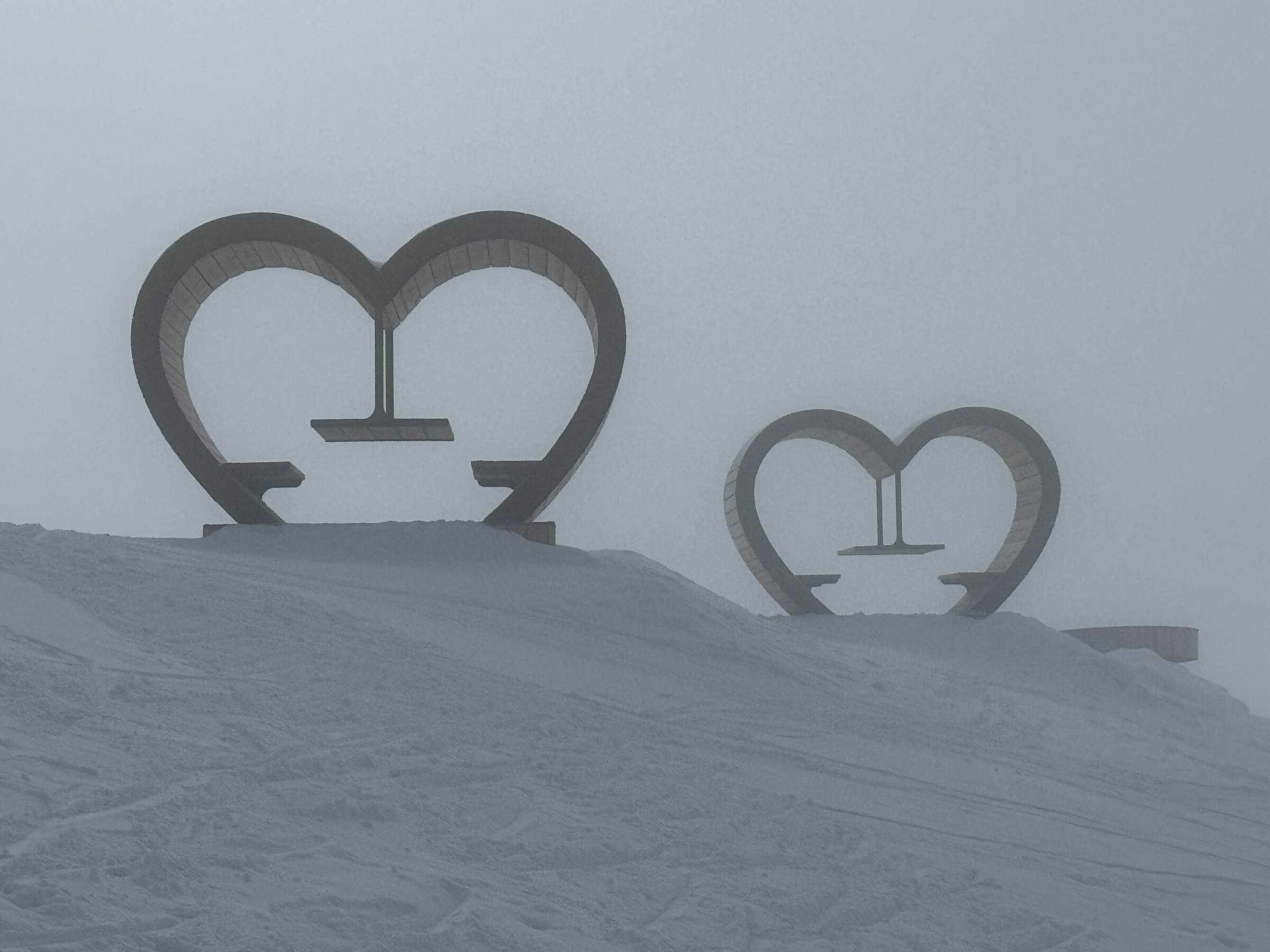 Am Nachmittag war die Sicht noch schlechter und es fing auch zum Schneien an. Wir machten mit weiteren Abfahrten analog zu denen am Vormittag die 10.000 Hm voll und ließen es dann gut sein.