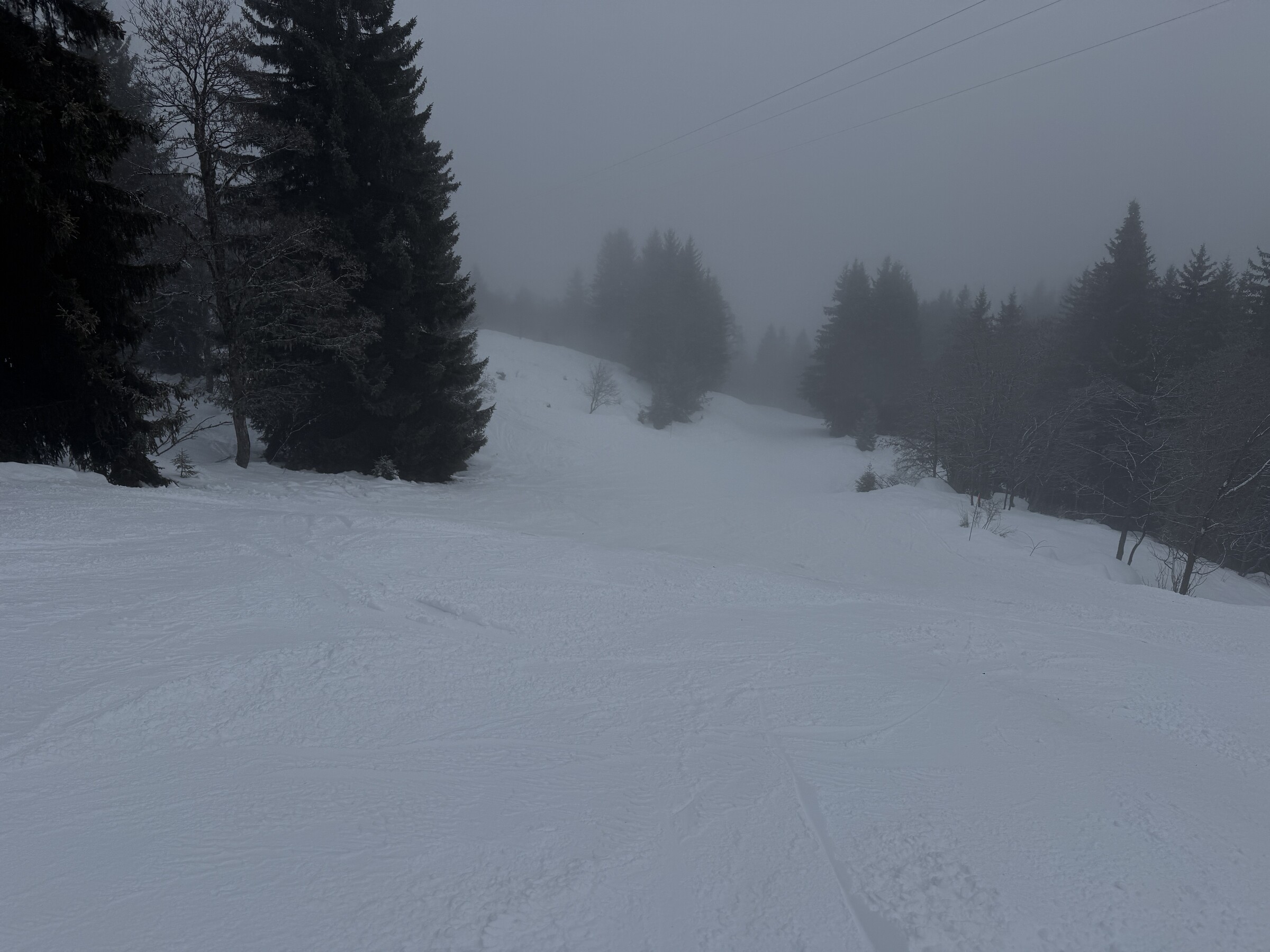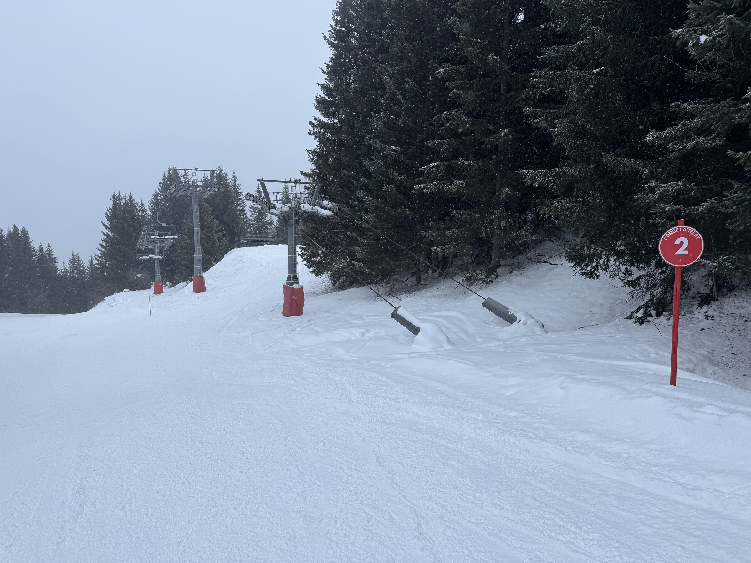 Mehr durch einen Zufall fanden wir heute auch die Abfahrt Combe Laitelet, die von der grünen Perdrix abzweigt. Auf der App ist sie geschlossen markiert, sie war aber offen. Es fehlt aber auch hier Schnee.