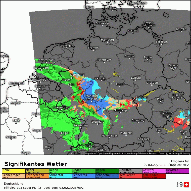 Ich habe mal einen Blick auf die Alpen geworfen und es kommt etwas ... dazu habe ich mal in Vier-Stunden-Schritten das signifikante Wetter animiert (Start heute 16 Uhr bis Freitag 0 Uhr): KlickDr.Ma hat geschrieben: 27.01.2026 - 13:32 Wäre schön, wenn die Alpen mal richtig was abbekämen.