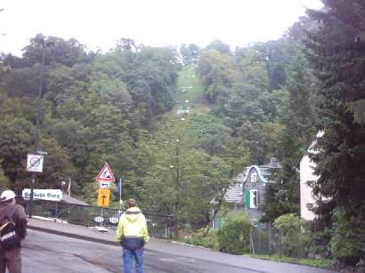 Nachdem wir eine Berg/Talfahrt für 2.80 Euro erworben hatten, fuhren wir im Regen schnell die Bahn hoch und wieder runter um ein paar Fotos zu machen.