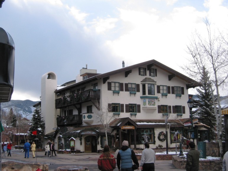 Die Nacht hindurch hat es geschneit, am Morgen ist es bewölkt und reichlich duster. Als Abfahrtszeitpunkt für Vail wird 7.45 Uhr festgesetzt, halten wir auch ein, um 7.53 Uhr geht es los, mittlerweile haben sich doch ein paar Wolkenlücken gezeigt, so dass wir nicht hoffnungslos sind, was das Wetter angeht. Im Schneebericht haben wir von 11 inches Neuschnee in Vail gelesen, das wären 28 cm! Die Interstate ist eisig und teilweise schneebedeckt, manche Trucks heizen trotzdem wie die Blöden. Uns gelingt trotzdem ein flottes Vorankommen und erreichen nach 35-40 min Vail über den 3250 m hohen Vail-Pass. Höchst beeindruckend welche Höhen und welche Steigungen die I 70 in ihrem Weg durch die Rockies meistert. In Vail parken wir in der Parkgarage Vail Village, die tatsächlich für den Tag schlappe 16 US-$ kostet! Nur gut, dass wir uns beim Skipass einiges erspart haben. Unromantisches Umziehen in der Parkgarage dann überraschend kurzer Fußweg durch Vail (beheizte Gehwege, der Schnee bleibt nicht liegen, es dampft!) zur Front de neige. Wetter hier: schlecht, Schneefall, man sieht deutlich, dass die 11 inches keine Übertreibung sind. Gegen 9.00 Uhr schnallen wir die Skier an (Toiletten im Tal nicht so komfortabel wie in Copper).