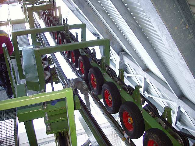 - Rollkettensattel, Laufwerke, Seilscheiben, Antrieb, Bergebahn: Garaventa, Goldau