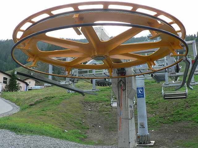 Von unten die Umlenkscheibe. Man beachte die verstrebungen und vergleiche sie mit der von Celerina.
