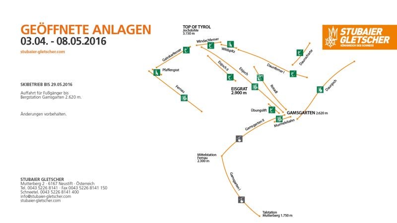 Vom 30.05. bis 08.07.2016 ist der Betrieb am Stubaier Gletscher eingestellt.