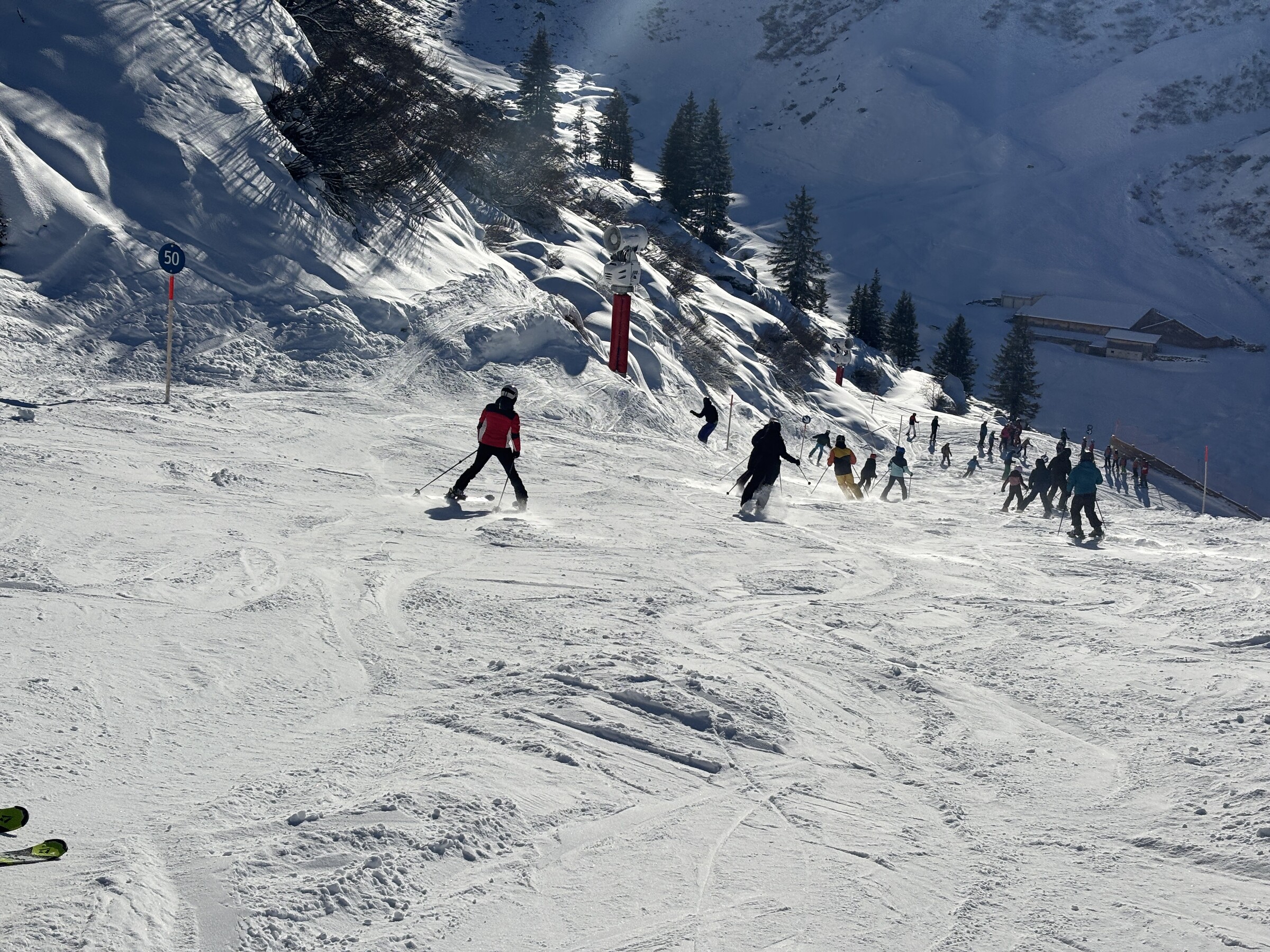 Jetzt auch die Talabfahrten Schruns, Gafrescha und -Valisera geöffnet. Man nähert sich zum Ferienende dem Vollbetrieb.