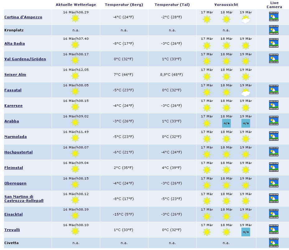 Ich habe grade auf http://www.wetter.atdas Wetter für die nächsten 8 Tagen angeschaut. Das Wetter von www.wetter.at is ja voll für die Katz. In Mayrhofen ist ein Temperatur Durchschnitt von 12 Grad, am Rastkogel von 2 Grad und auf der Eggalm von 6 Grad
