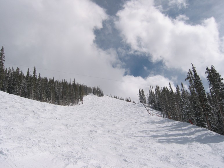 Eine einzige schlechte Stelle gibt es doch: der kurze Steilhang der „Centennial“ direkt vor der Mittelstation, da müssen alle runter, die vom Birds of Prey Express kommen und alle Skikurse & Co von den leichten Gipfelhängen, die mit dem Cinch-Express fahren wollen. Hier immer verbuckelt und abgefahren. Aber absolute Ausnahme.