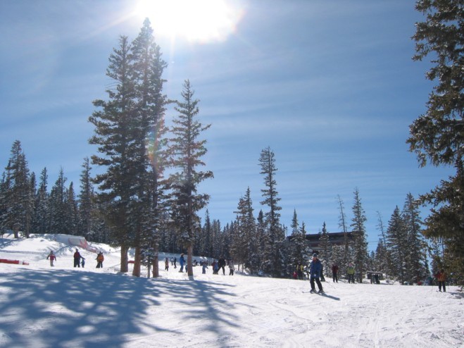 Verschlafen heute etwas, d.h. stehen trotz hervorragendem Wetter erst um 7.15 Uhr auf, sind dann aber schon eine Stunde später abfahrbereit. Parken wieder am „Bear Lot“ und starten bei frühlingshaften Temperaturen und Feeling gegen 9.30 Uhr in den Skitag.