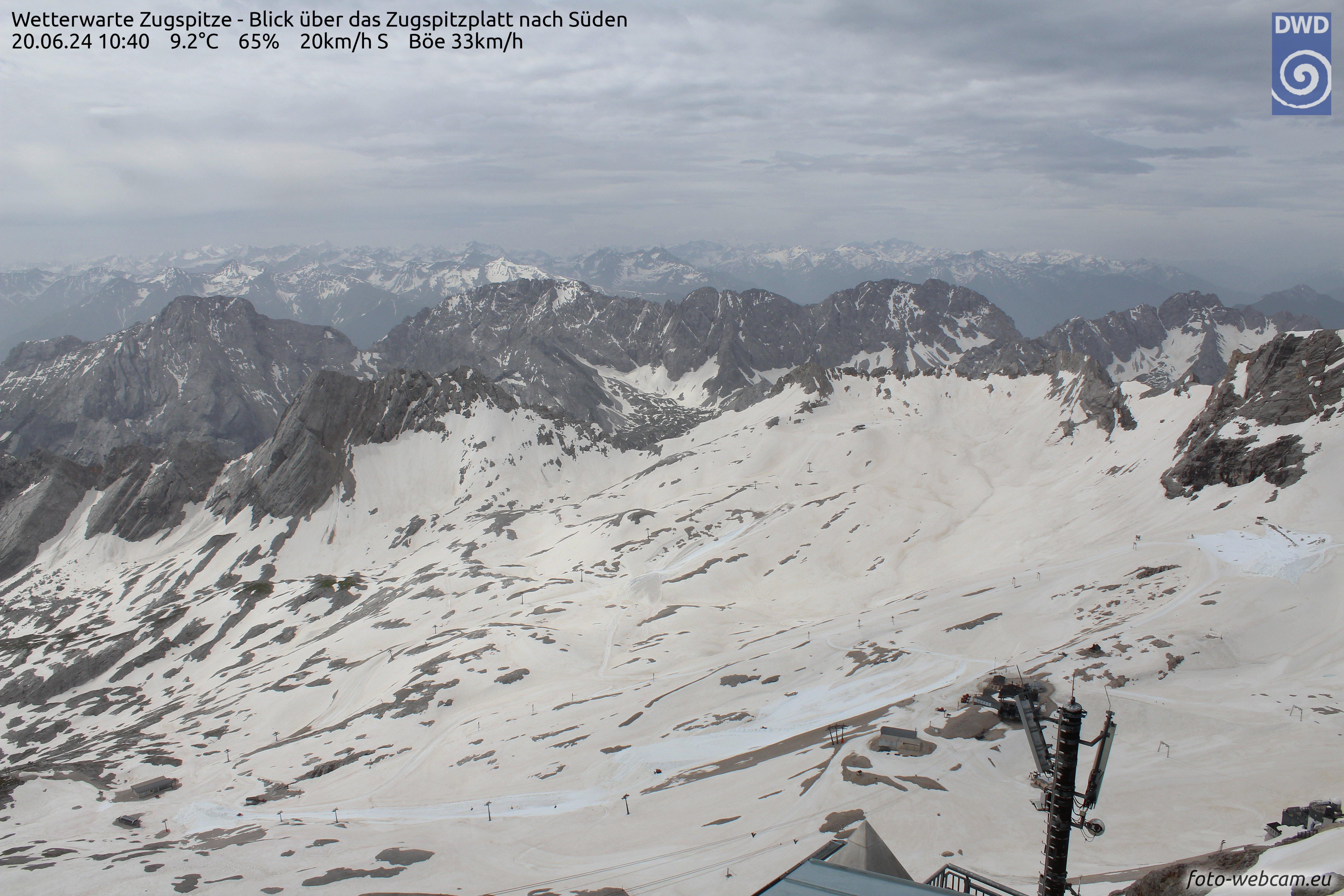 Bisher noch einige Schneefelder und die Gletscherreste schneebedeckt. Auch ist der See am Schneeferner noch nicht besonders ausgeprägt.