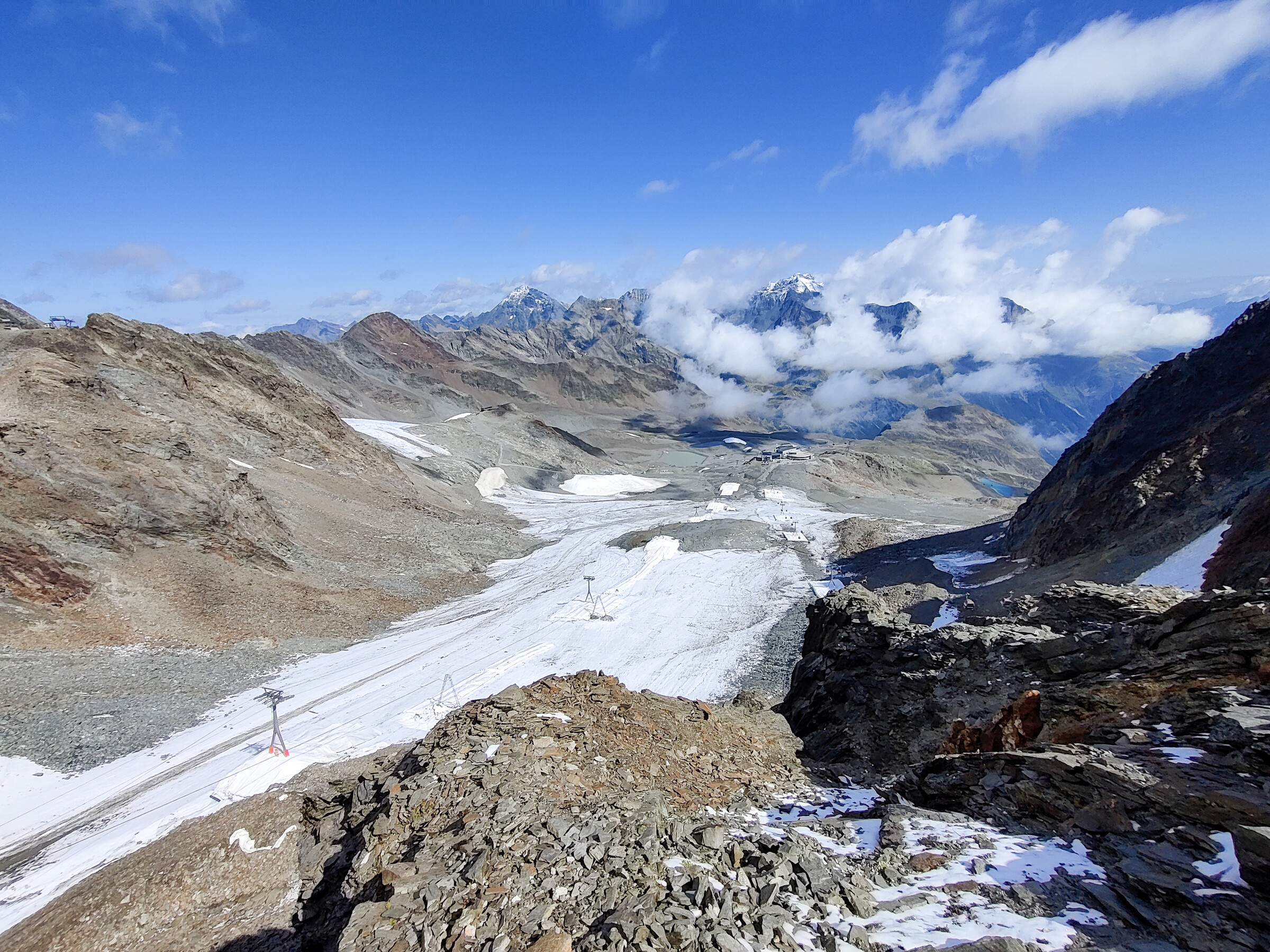 Das Foto ist wirklich toll wegen der für den "normalen Skiläufer" ungewohnten Übersicht über das komplette Gletscherskigebiet. Ich habe mir erlaubt, aus deinem Bild ein paar Ausschnitte für den interessierten Betrachter zu vergrößern und einzuordnen:pinkrocker hat geschrieben: 19.08.2025 - 19:07 Hi,