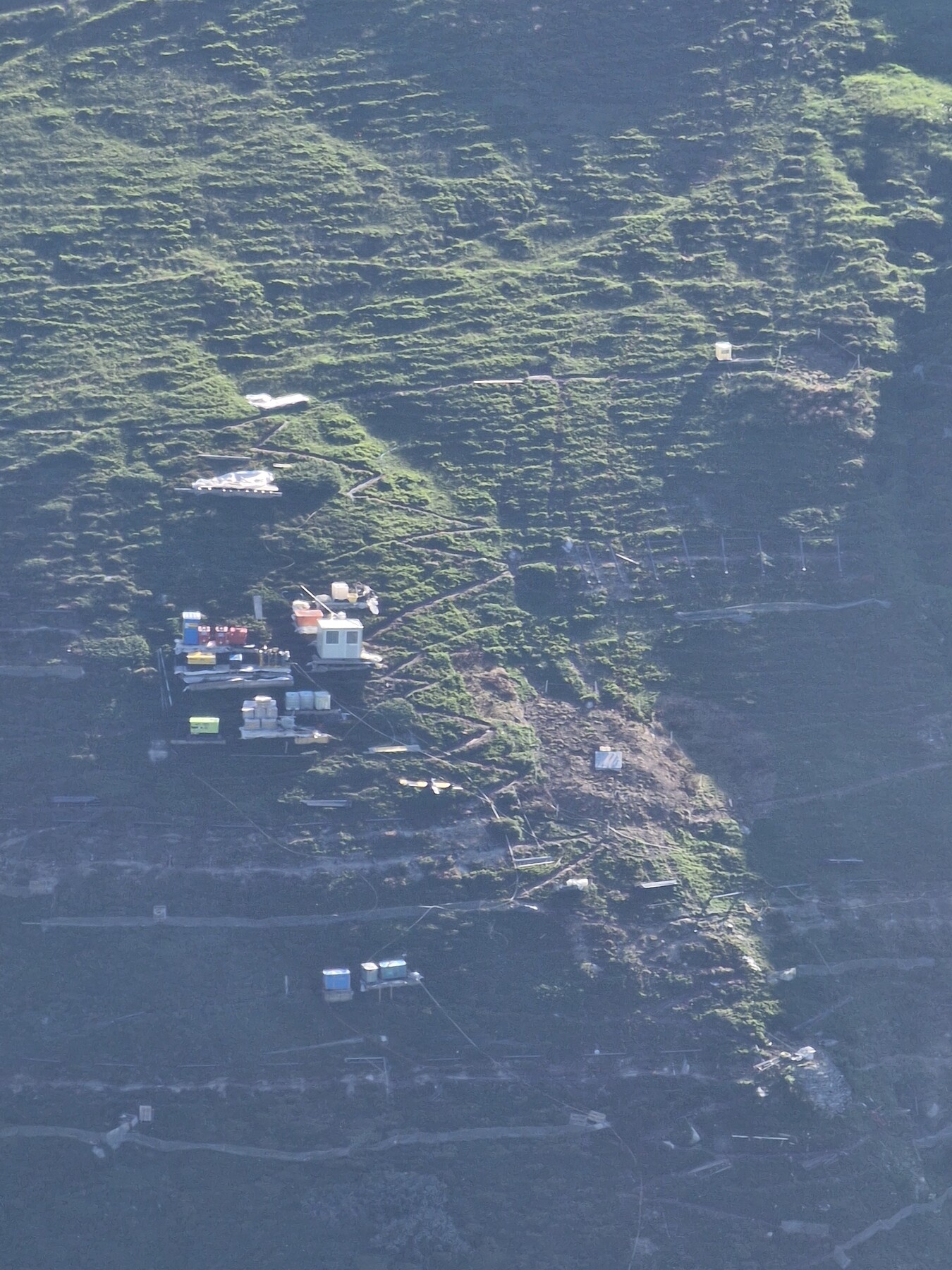 Zoom zum Installationsplatz mitten im steilen Hang auf Cuolm-Val-Seite. Wahrscheinlich für die Lawinenverbauungen.