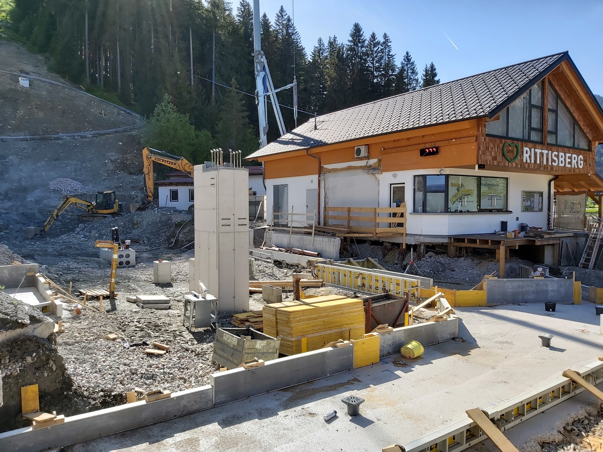 Die Bauarbeiten für die Grube/den Hangabschnitt am Rittisberg müssen ja schon letztes Jahr begonnen haben, wenn an der Böschung schon Gras wächst, oder?